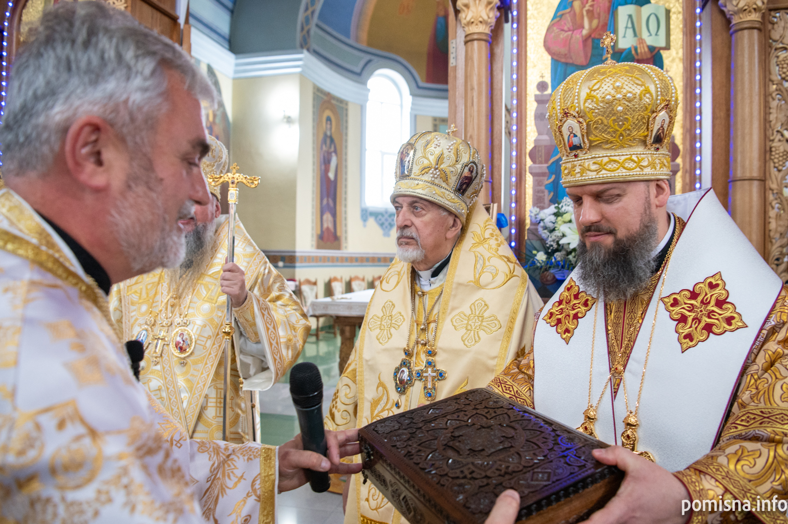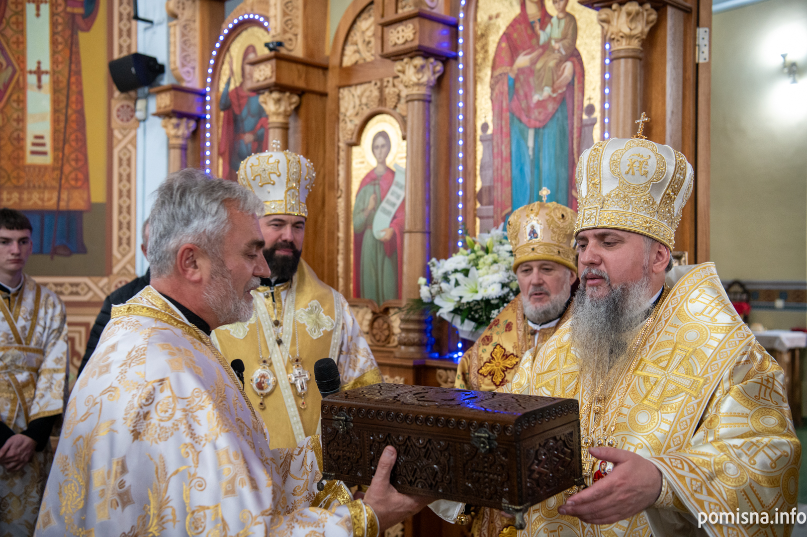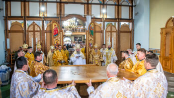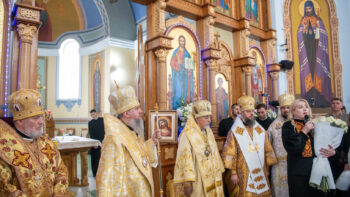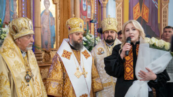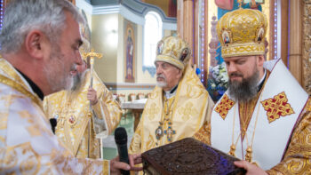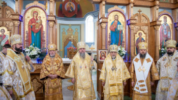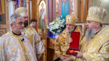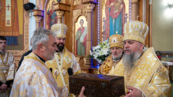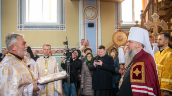 Після завершення літургії Предстоятель Православної Церкви України привітав громаду зі знаменною подією – освяченням престолу. Блаженнійший владика подарував архієпископу Юліану панагію, а настоятелю храму, протоієрею Івану Близнюку, – іменний хрест Предстоятеля.