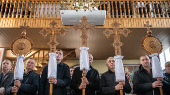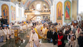 Разом із духовенством молилися численні віряни, голова Івано-Франківської обласної військової адміністрації Світлана Онищук та представники місцевої влади.