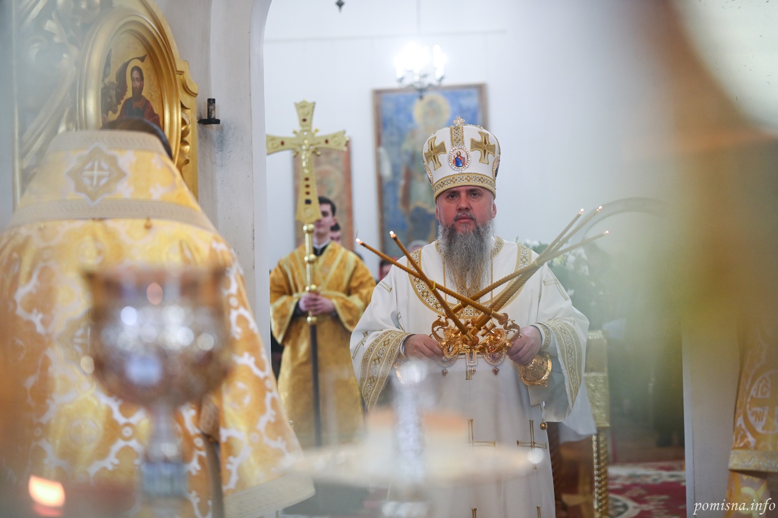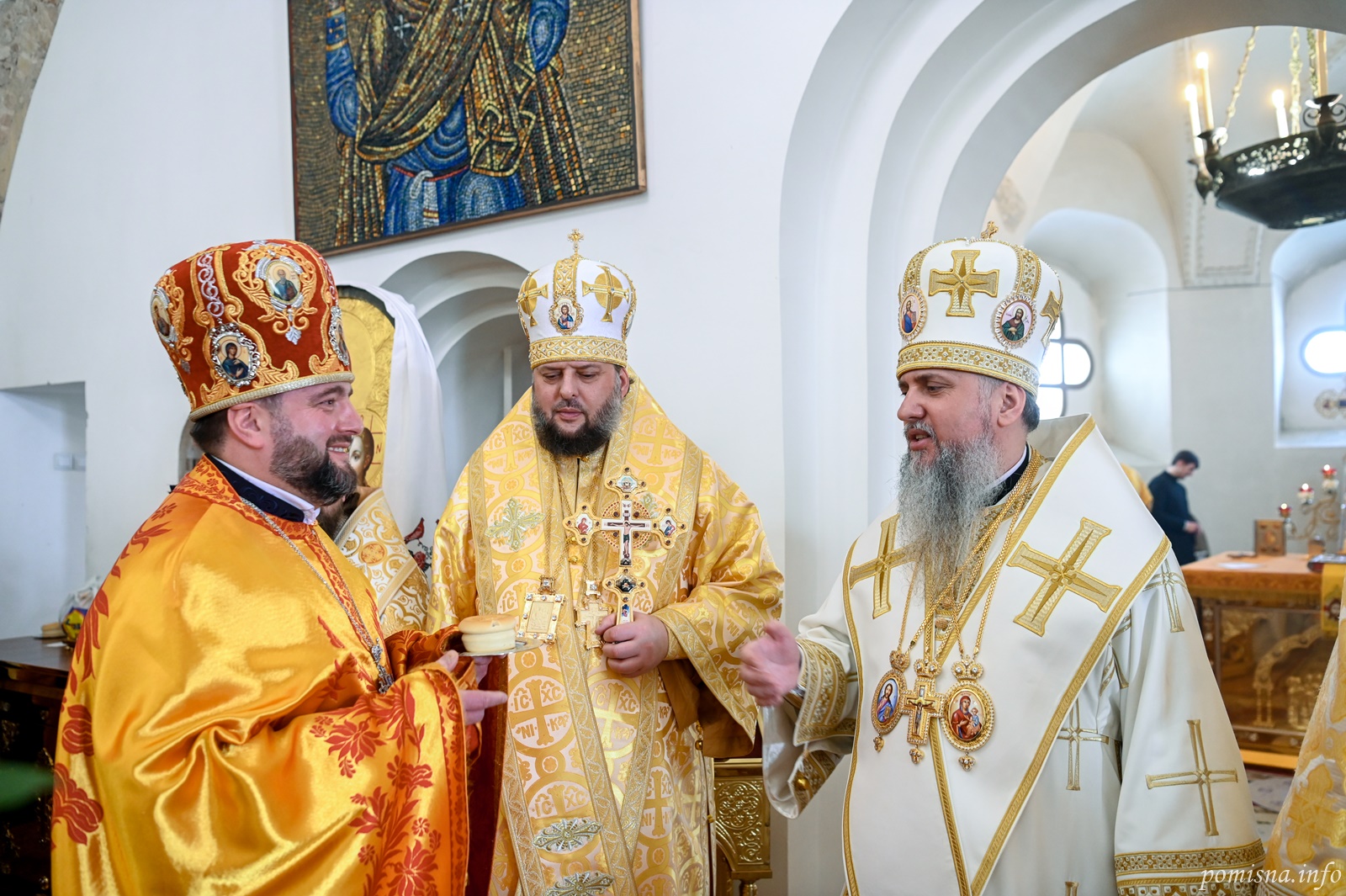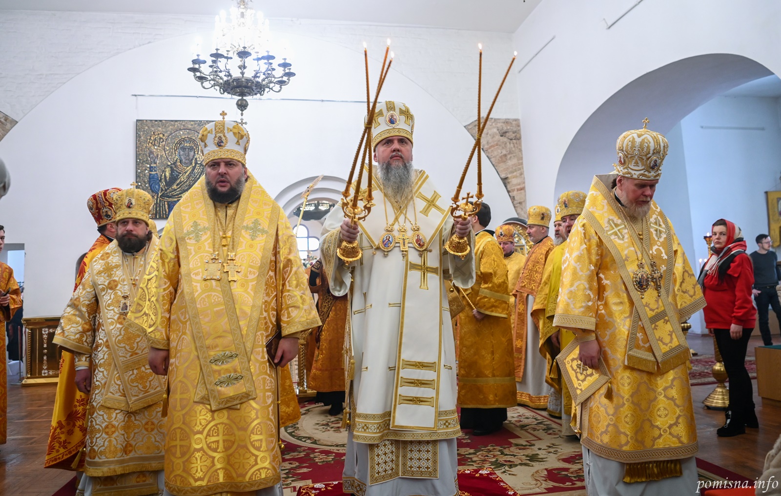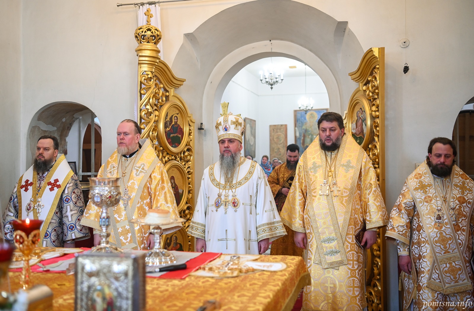 Предстоятелю автокефальної Української Православної Церкви співслужили митрополит Білоцерківський Євстратій, архієпископ Тернопільський і Бучацький Тихон, архієпископ Вишгородський Агапіт, єпископ Бориспільський Авраамій, настоятель Малої Софії протоієрей Петро Ландвитович, клірики храму та запрошене духовенство.