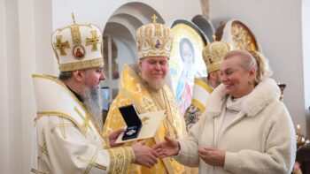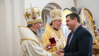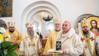 Наприкінці богослужіння Блаженнійший владика виголосив першосвятительське слово проповіді, вручив церковні відзнаки директору Національного заповідника «Софія Київська» Нелі Куковальській та благодійнику храму, а також привітав ректора Київської православної богословської академії протоієрея Ярослава Романчука з нагоди дня тезоіменитства.
