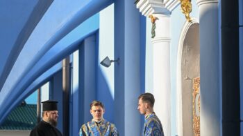 Предстоятелю автокефальної Української Православної Церкви співслужили архієпископ Луганський і Старобільський Лаврентій, намісник Золотоверхої обителі архієпископ Вишгородський Агапіт, всечесна братія монастиря та запрошене духовенство.