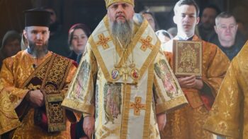 Предстоятелю автокефальної Української Православної Церкви співслужили архієпископ Луганський і Старобільський Лаврентій, єпископ Васильківський Єфрем, братія Золотоверхої обителі та запрошене духовенство.