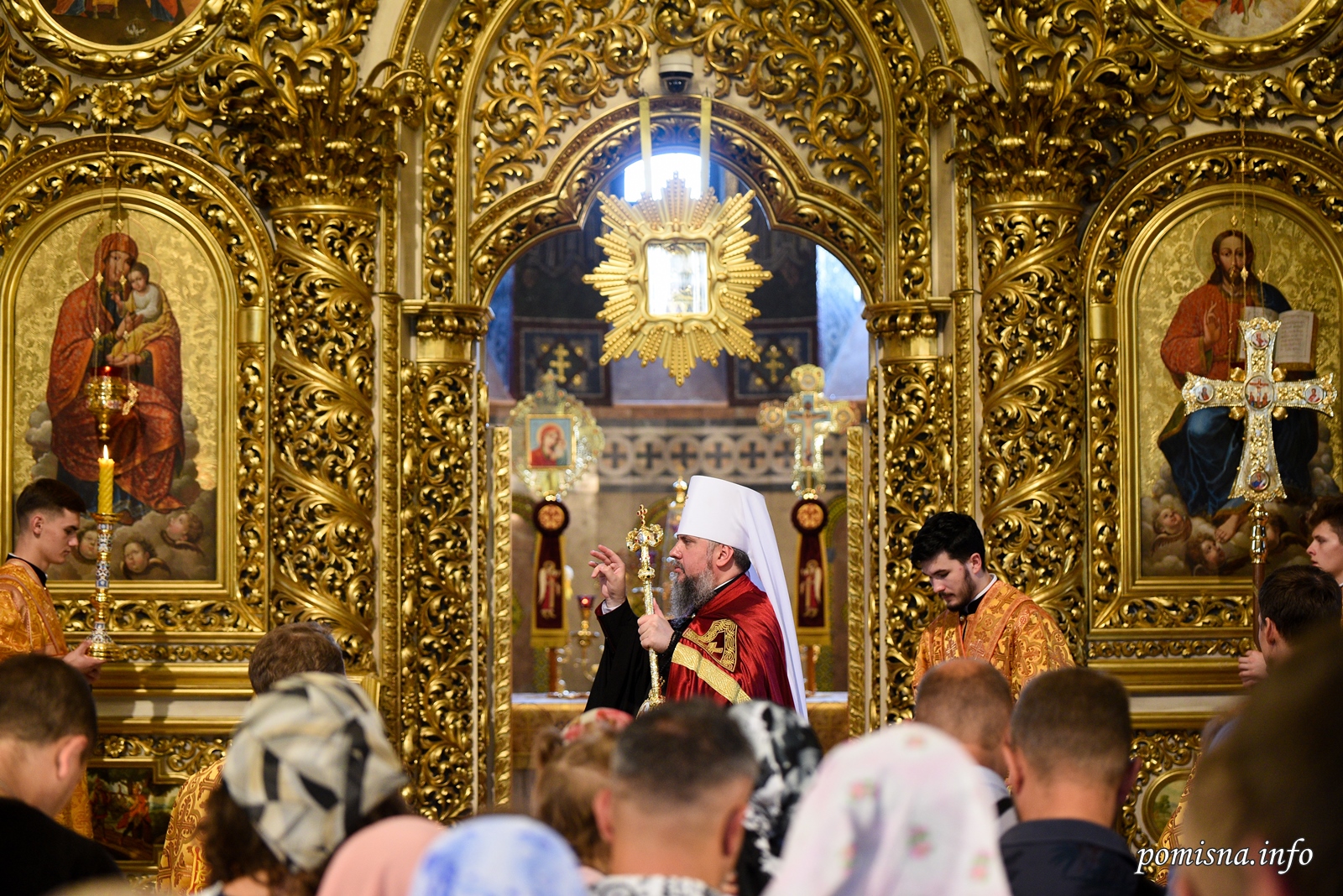 Предстоятелю помісної Української Православної Церкви співслужили митрополит Сімферопольський і Кримський Климент, намісник Золотоверхої обителі архієпископ Вишгородський Агапіт, єпископ Бориспільський Антоній, всечесна братія монастиря та запрошене духовенство.