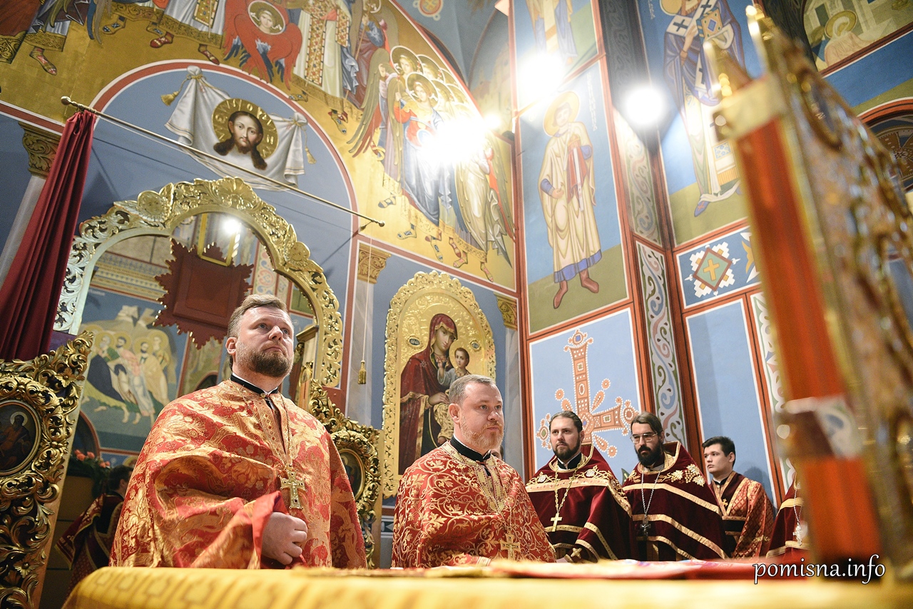 Його Блаженству співслужили митрополит Переяславський і Вишневський Олександр, архієпископ Чернігівський і Ніжинський Євстратій, архієпископ Вишгородський Агапіт, єпископ Васильківський Лаврентій, єпископ Володимир-Волинський і Турійський Матфей, єпископ Шепетівський Адріан, єпископ Одеський і Балтський Павло, всечесна братія монастиря та запрошене духовенство.
