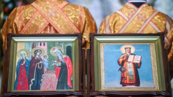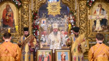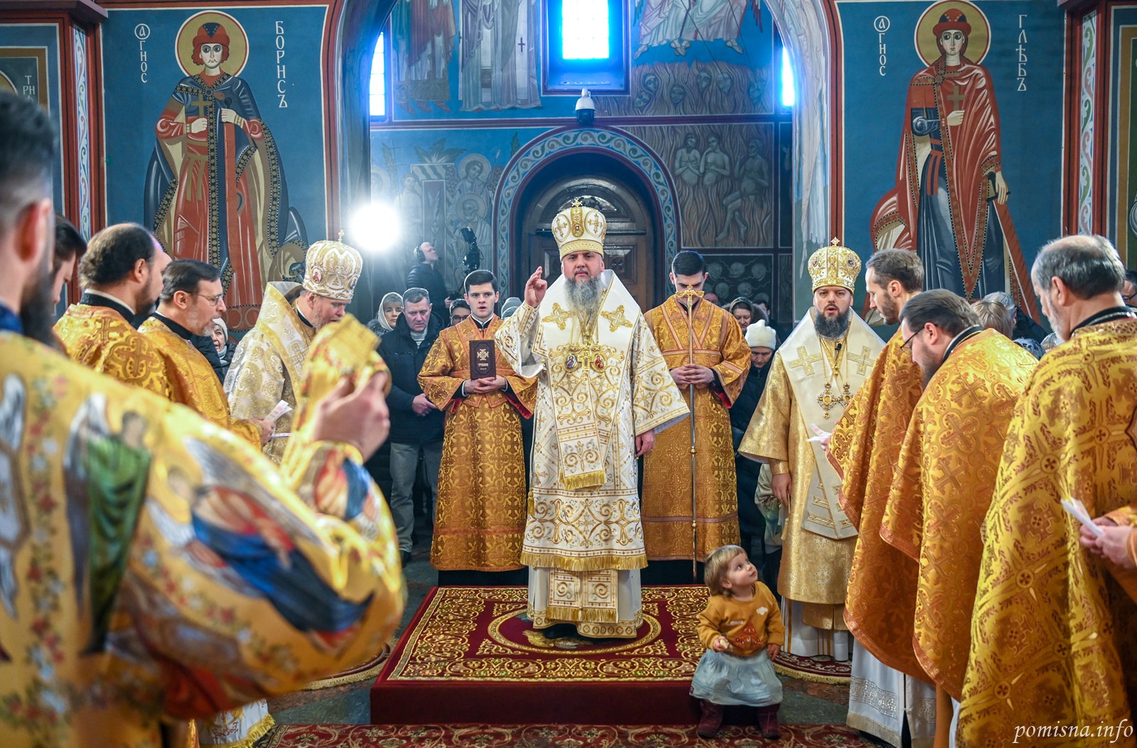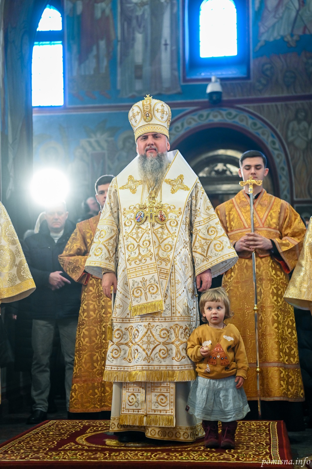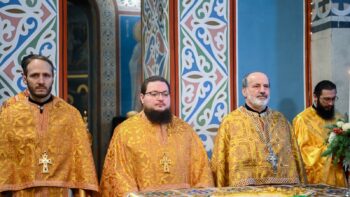 Предстоятелю автокефальної Української Православної Церкви співслужили митрополит Білоцерківський Євстратій, намісник Золотоверхої обителі архієпископ Вишгородський Агапіт, всечесна братія монастиря та запрошене духовенство.