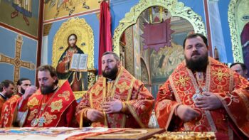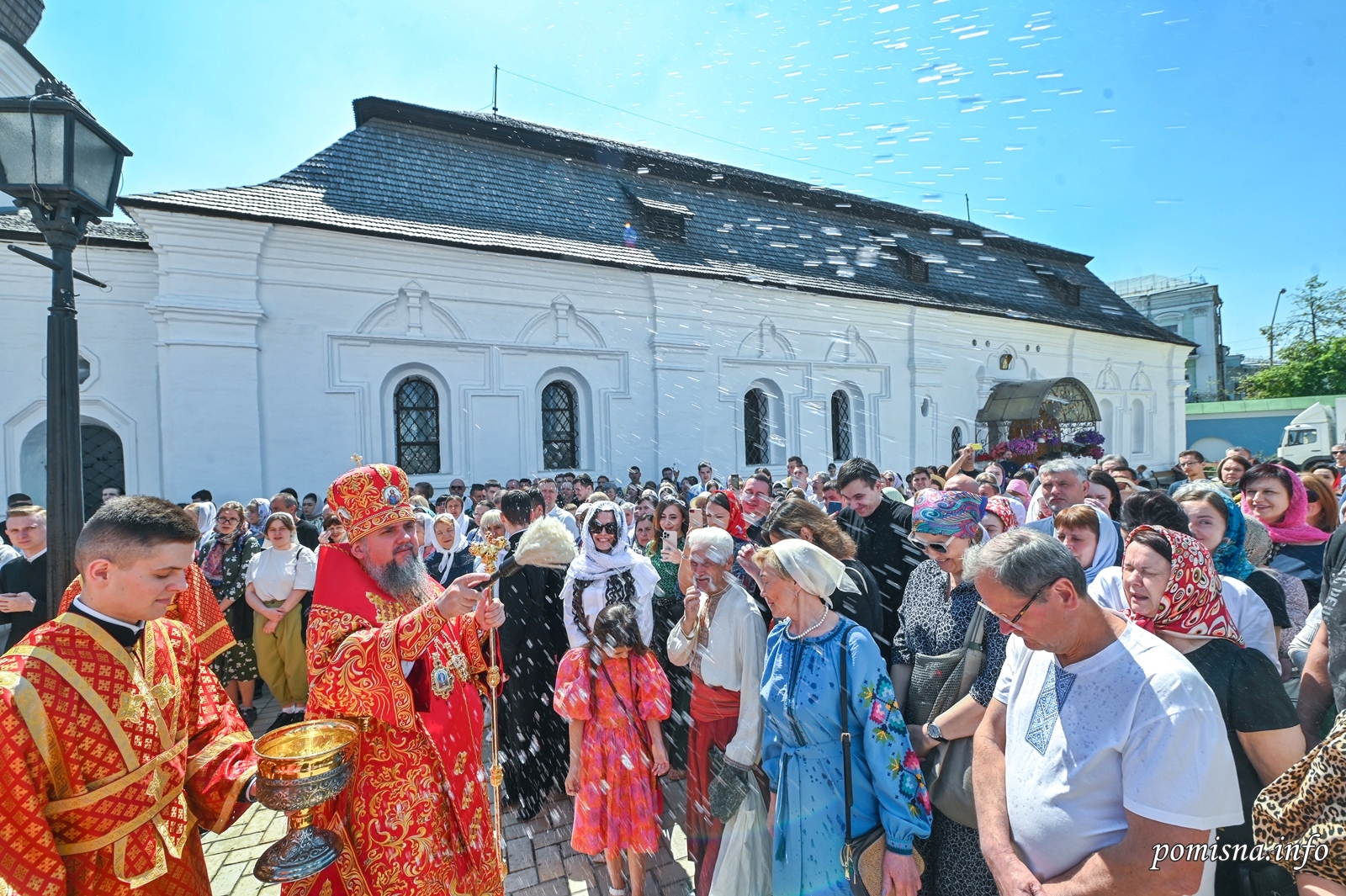 Його Блаженству співслужили намісник Золотоверхої обителі архієпископ Вишгородський Агапіт, архієпископ Хмельницький і Шепетівський Павло, єпископ Васильківський Єфрем, єпископ Богуславський Арсеній, намісник Свято-Успенської Києво-Печерської Лаври єпископ Бориспільський Авраамій, всечесна братія монастиря та запрошене духовенство.