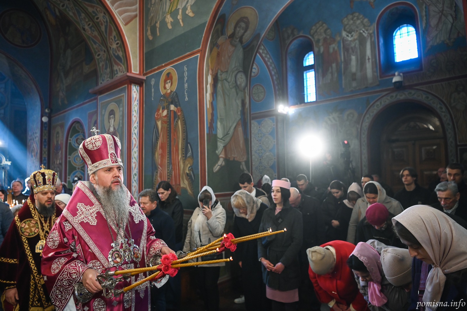 Предстоятелю автокефальної Української Православної Церкви співслужили намісник Золотоверхої обителі архієпископ Вишгородський Агапіт, всечесна братія монастиря та запрошене духовенство.