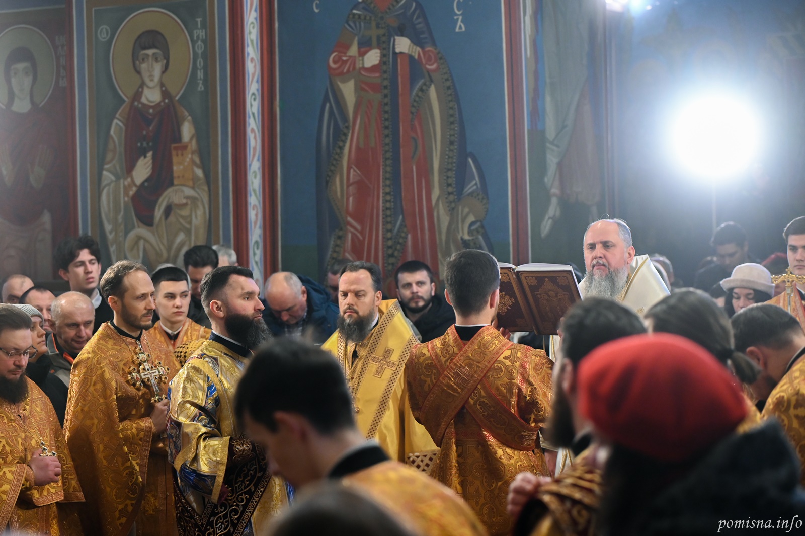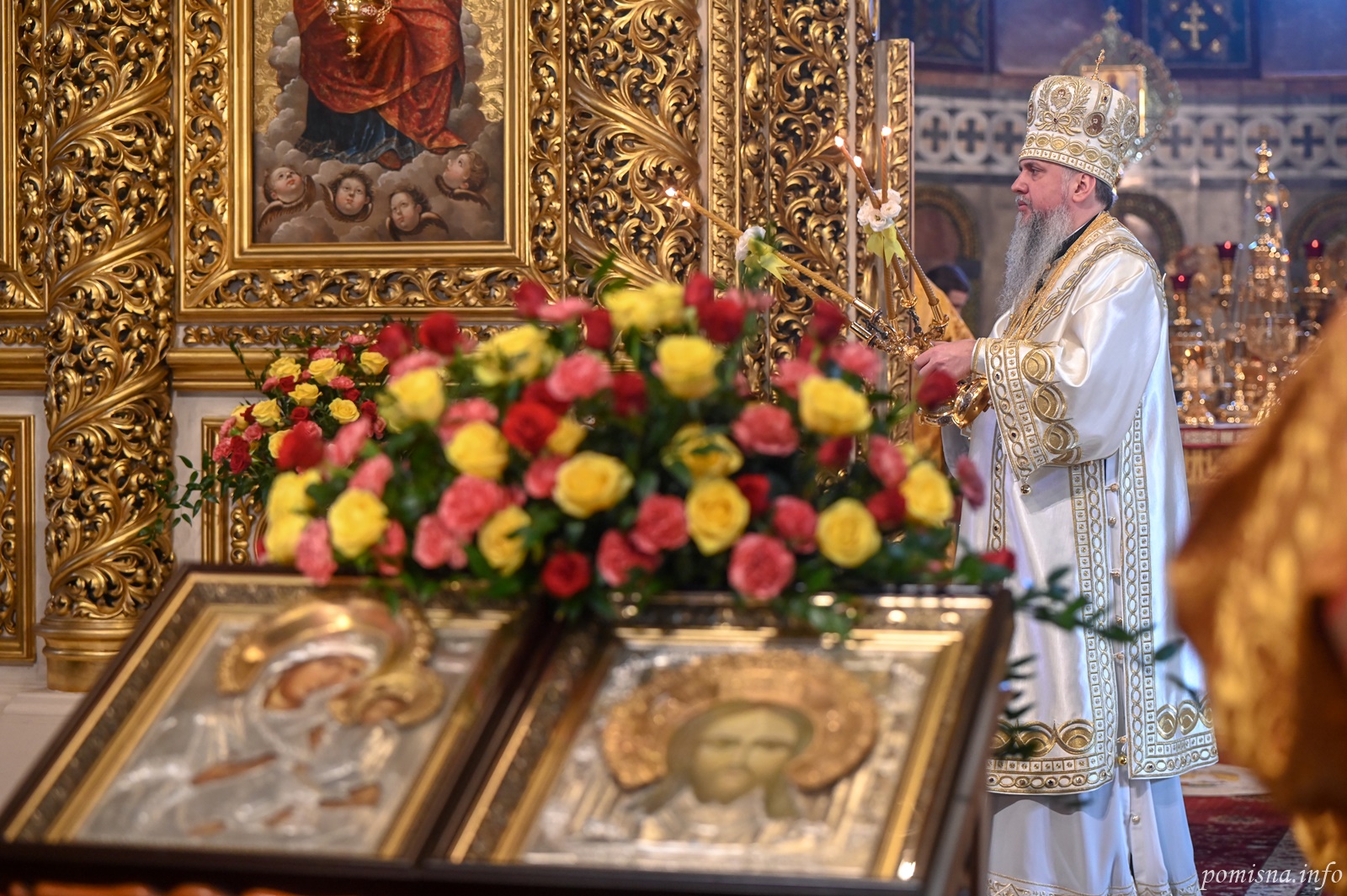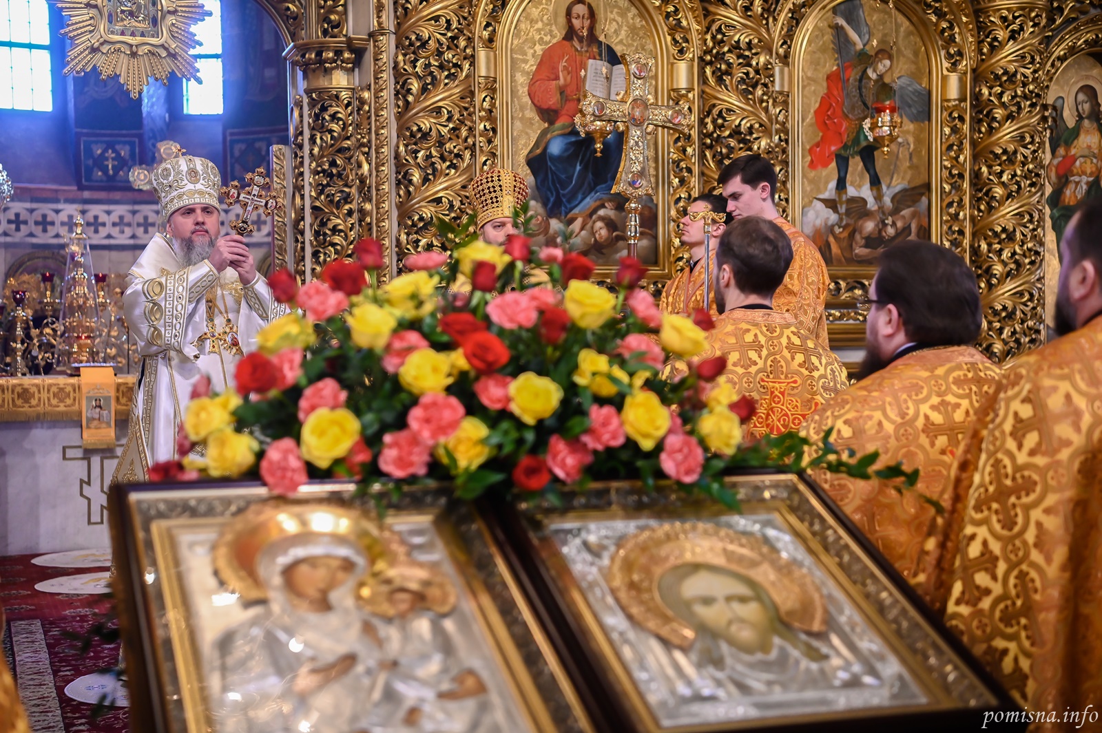 Предстоятелю автокефальної Української Православної Церкви співслужили намісник Золотоверхої обителі архієпископ Вишгородський Агапіт, єпископ Васильківський Єфрем, всечесна братія монастиря та запрошене духовенство.
