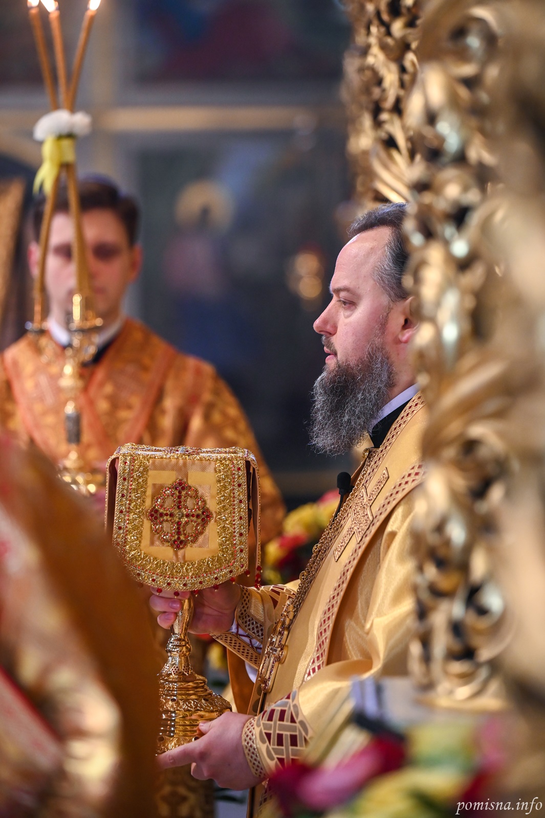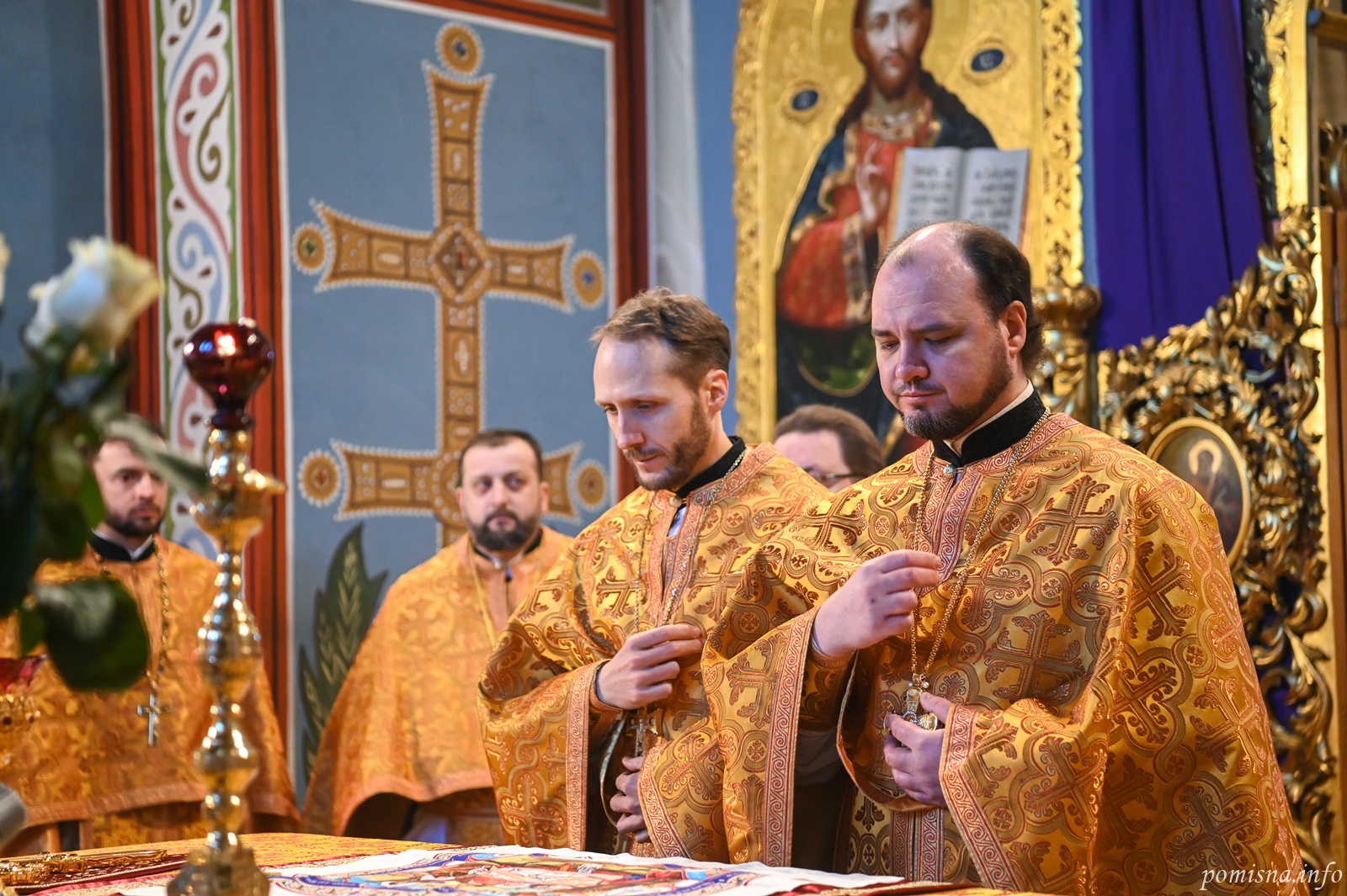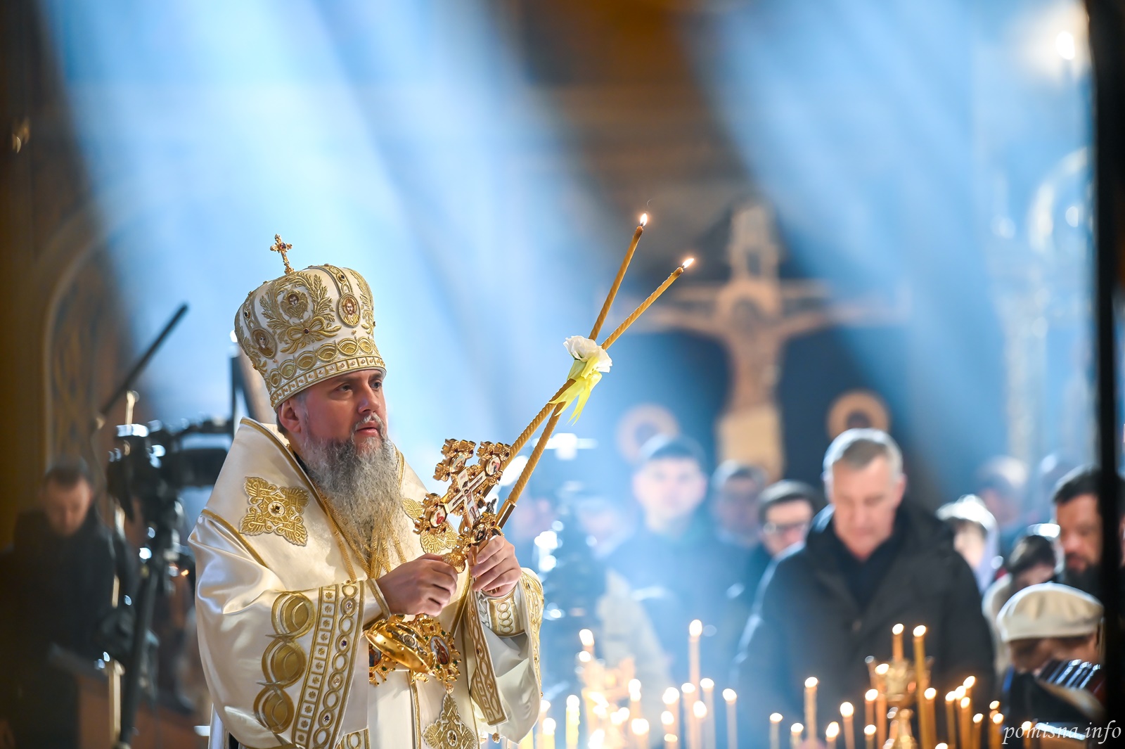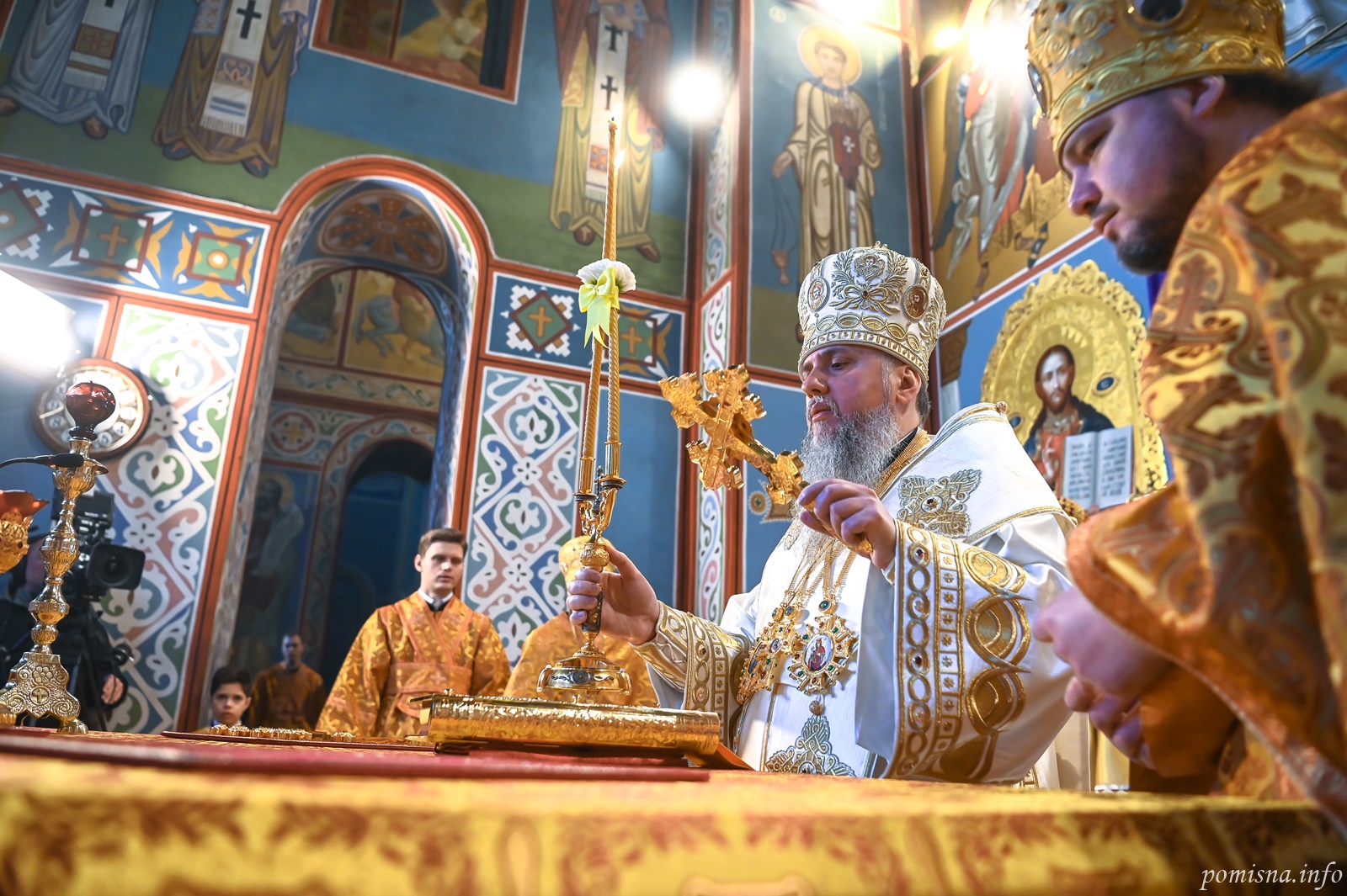 Предстоятелю автокефальної Української Православної Церкви співслужили намісник Золотоверхої обителі архієпископ Вишгородський Агапіт, єпископ Васильківський Єфрем, всечесна братія монастиря та запрошене духовенство.