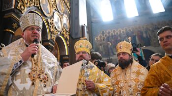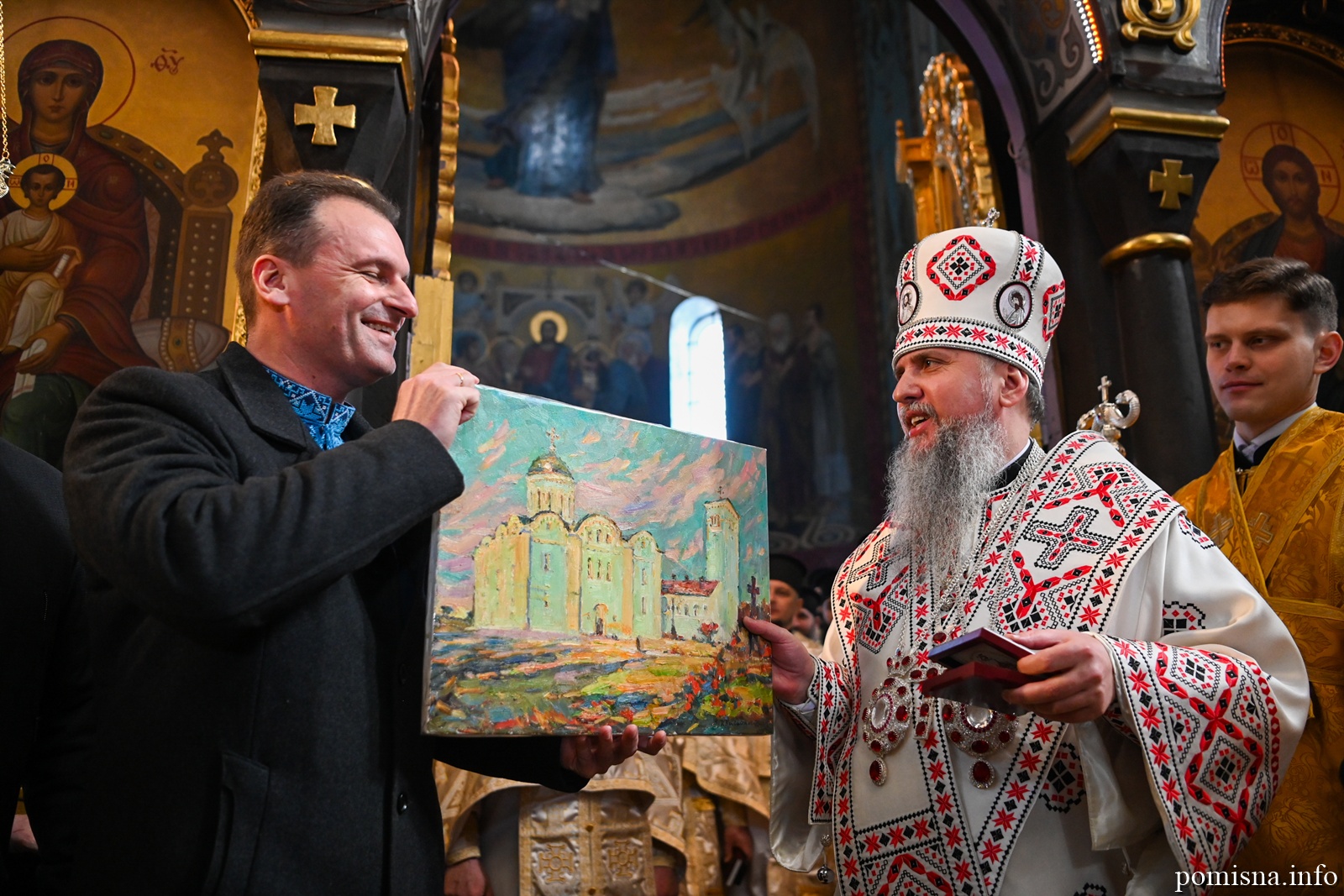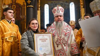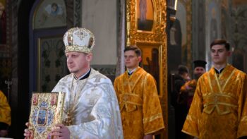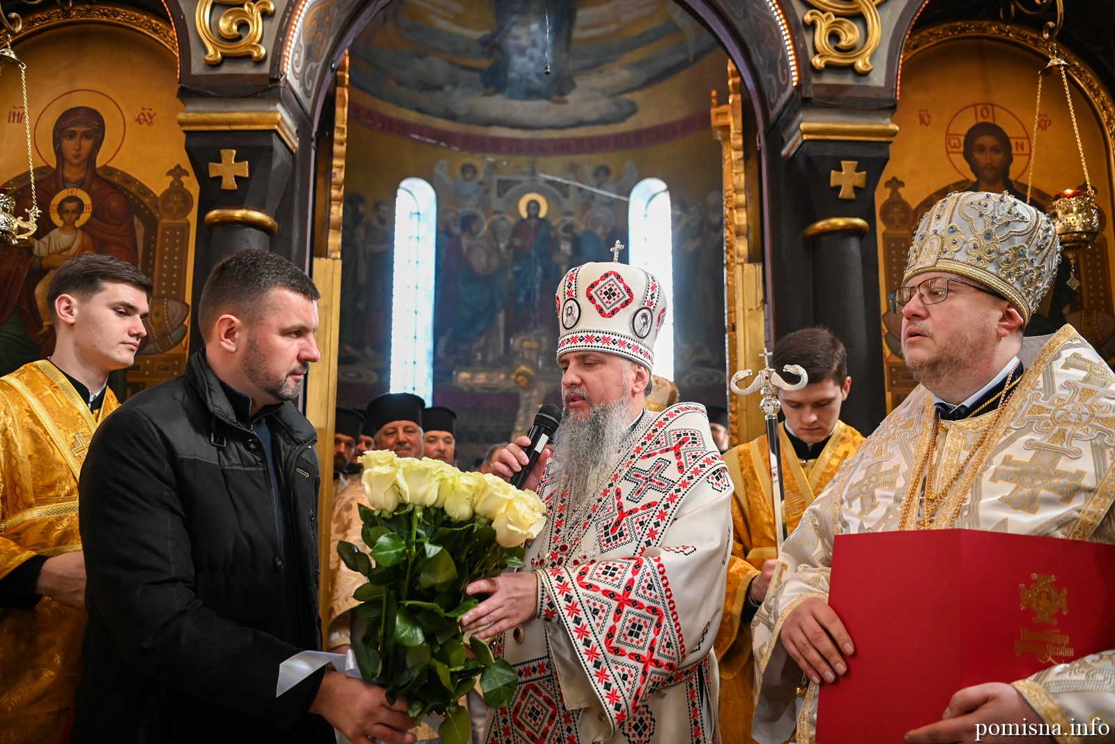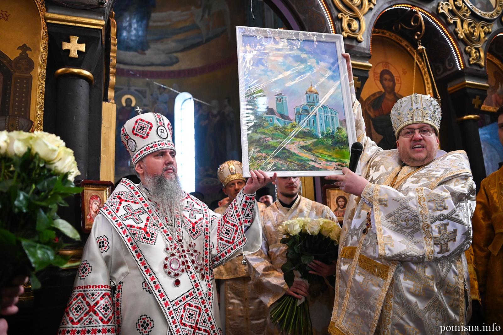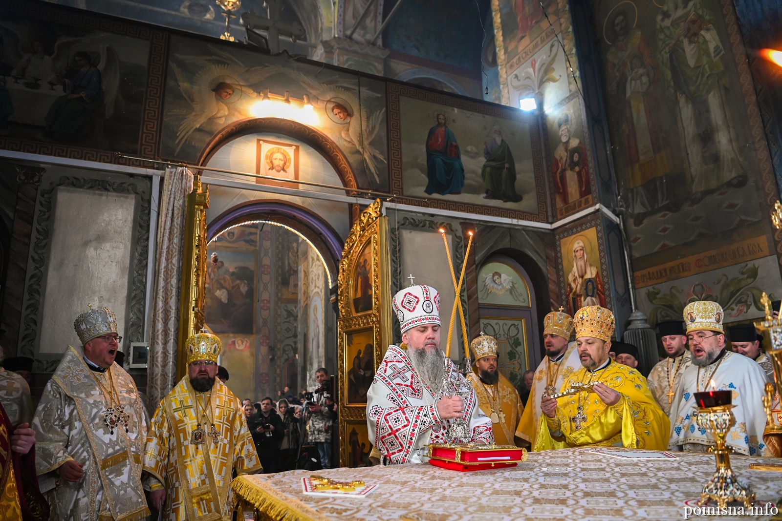 Наприкінці Божественної літургії Предстоятель привітав громаду з визначною подією – поверненням Української Церкви до древнього княжого Успенського собору, подарував храму напрестольне Євангеліє, архієпископу Матфею – памʼятну панагію та відзначив благодійників церковними нагородами.