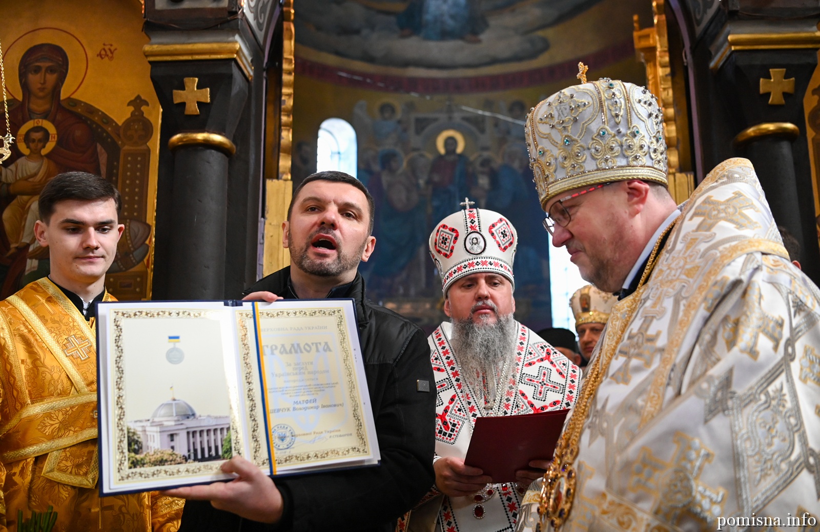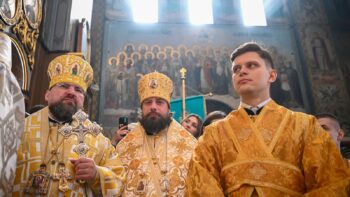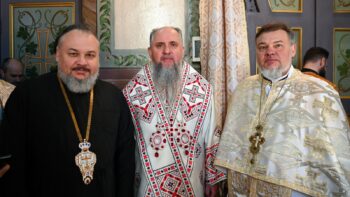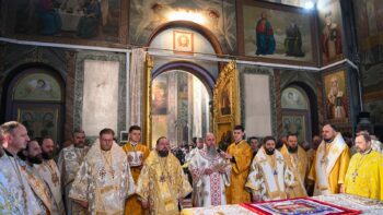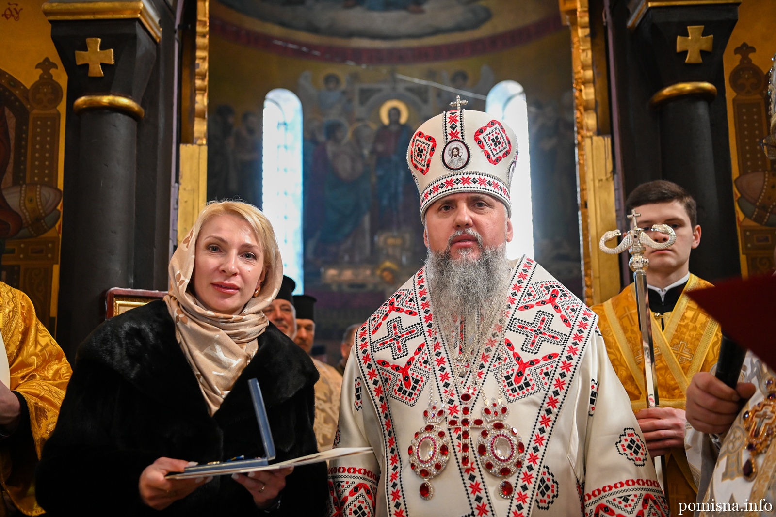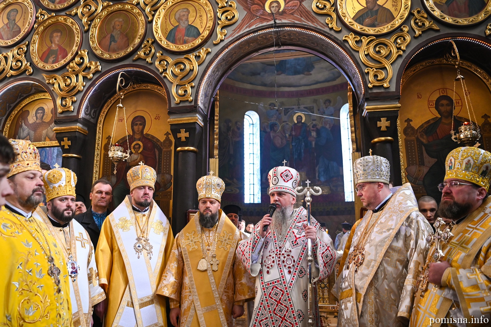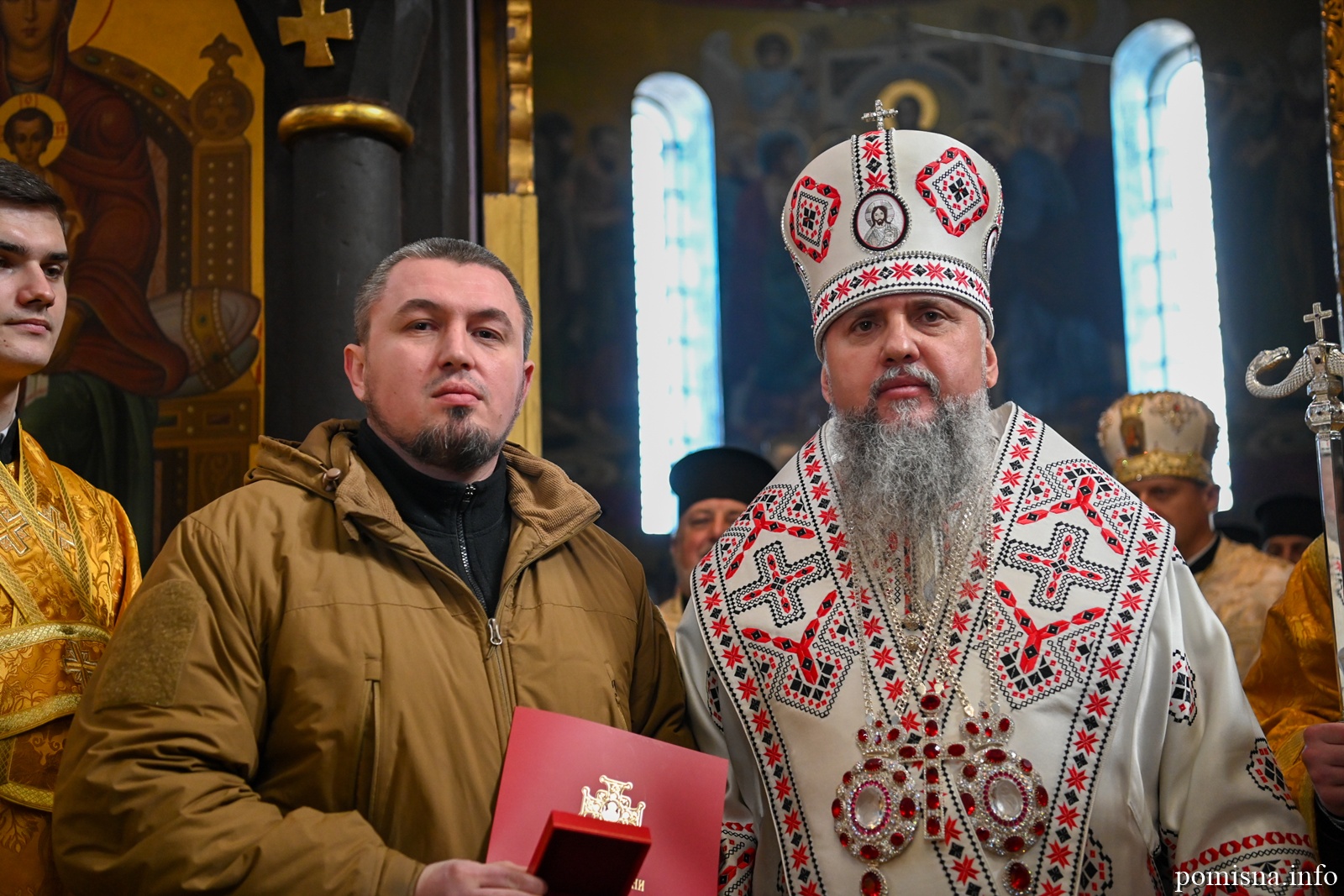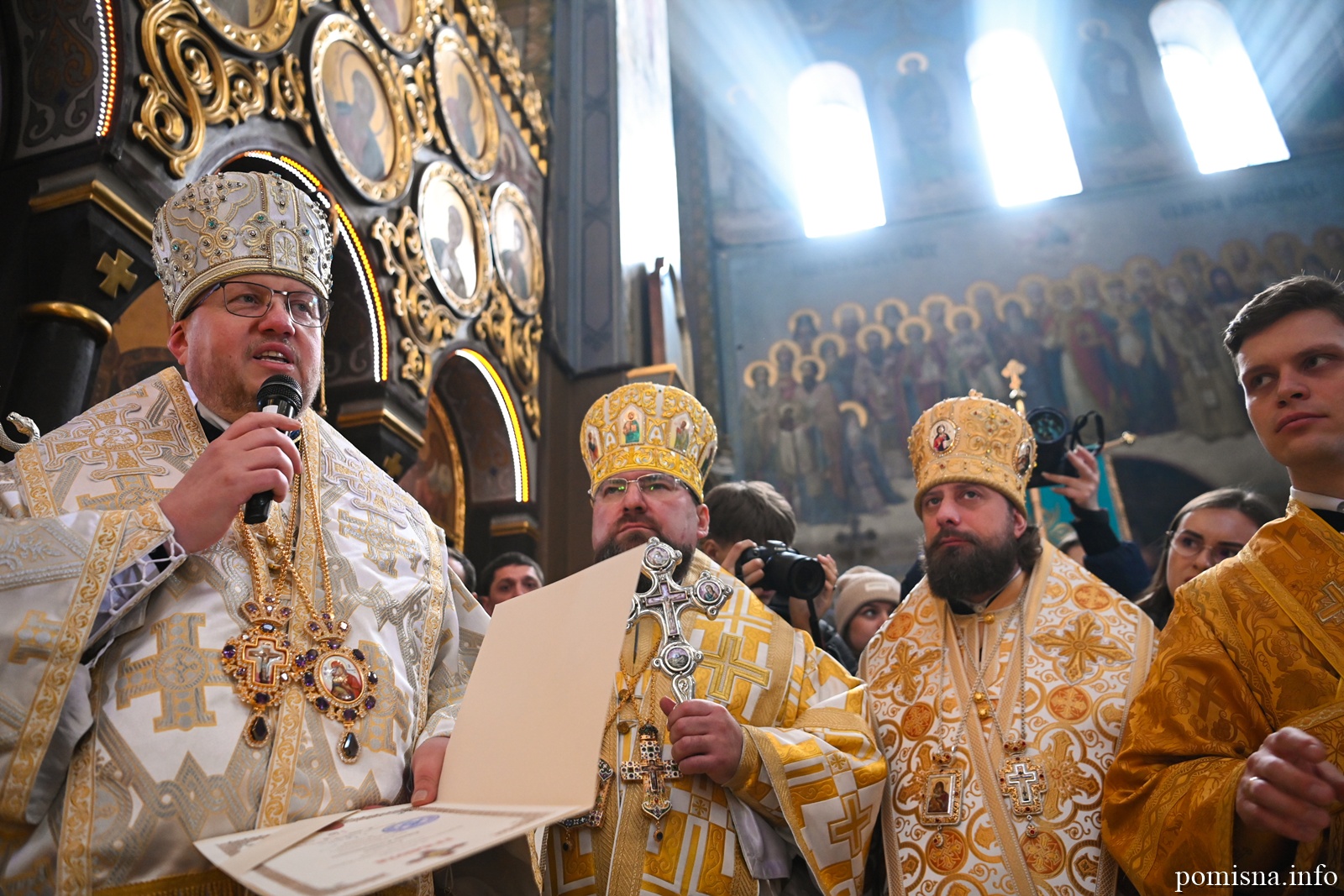 Наприкінці Божественної літургії Предстоятель привітав громаду з визначною подією – поверненням Української Церкви до древнього княжого Успенського собору, подарував храму напрестольне Євангеліє, архієпископу Матфею – памʼятну панагію та відзначив благодійників церковними нагородами.