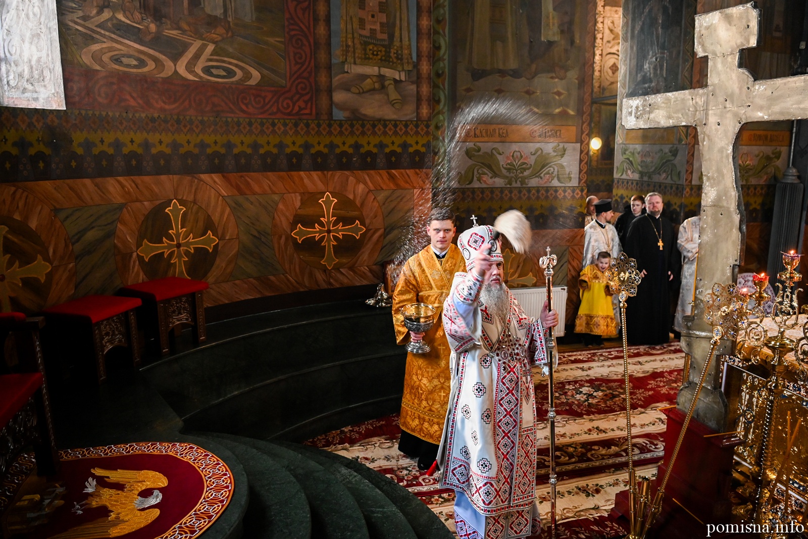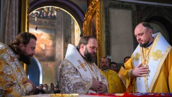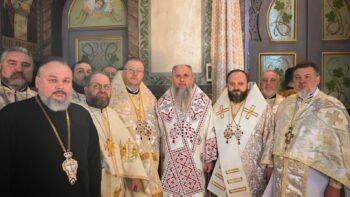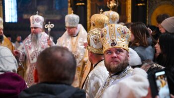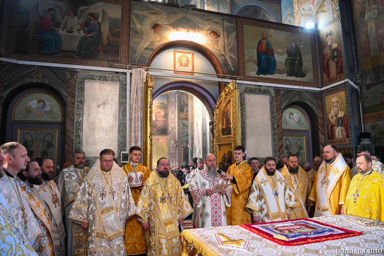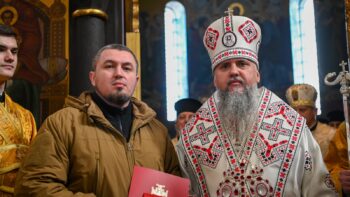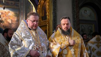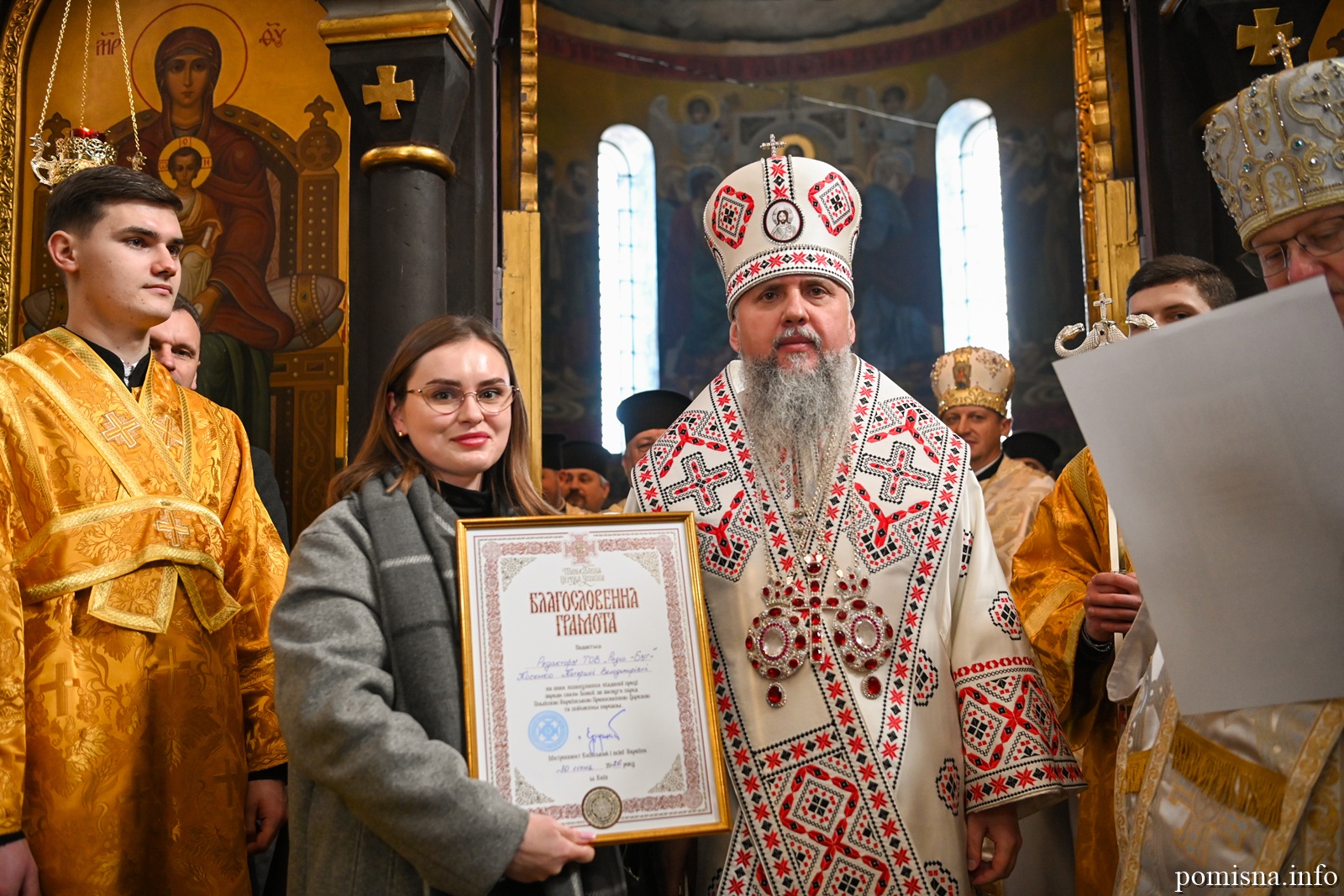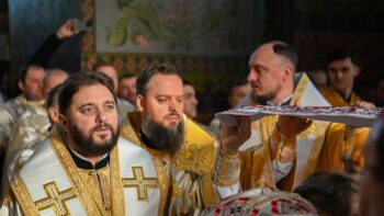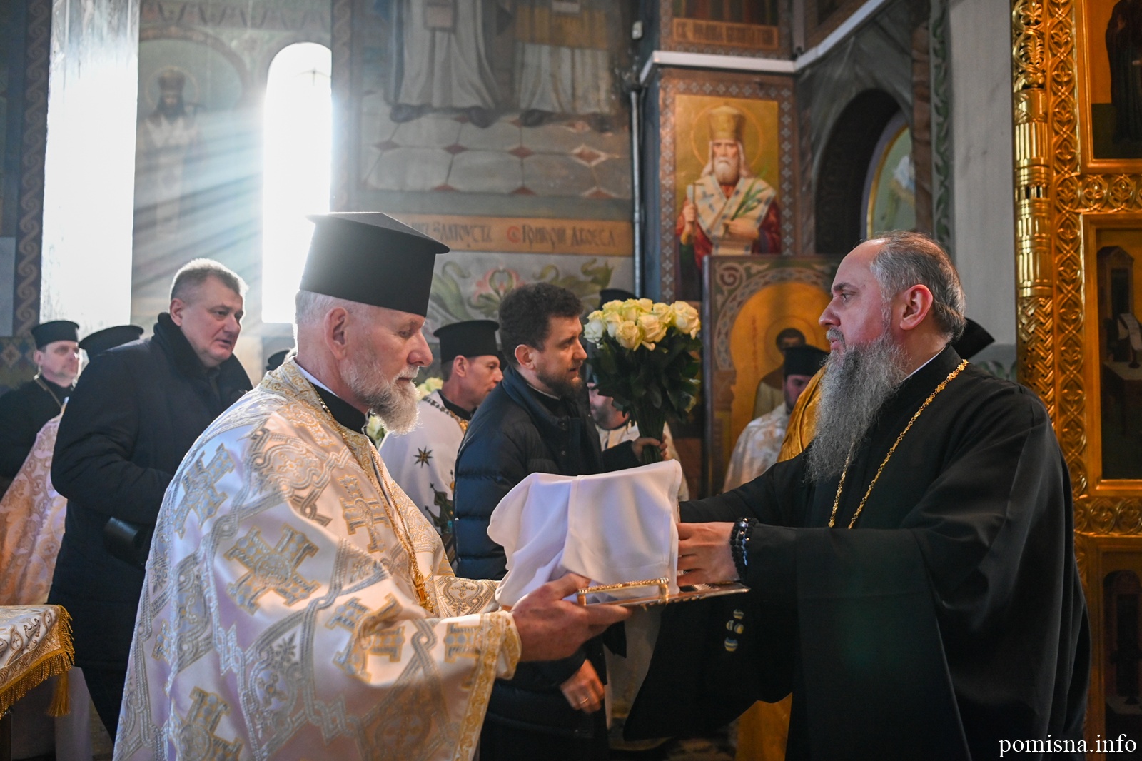 Наприкінці Божественної літургії Предстоятель привітав громаду з визначною подією – поверненням Української Церкви до древнього княжого Успенського собору, подарував храму напрестольне Євангеліє, архієпископу Матфею – памʼятну панагію та відзначив благодійників церковними нагородами.