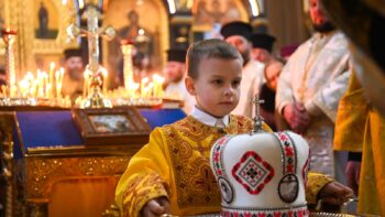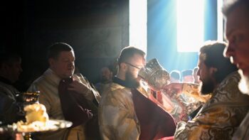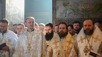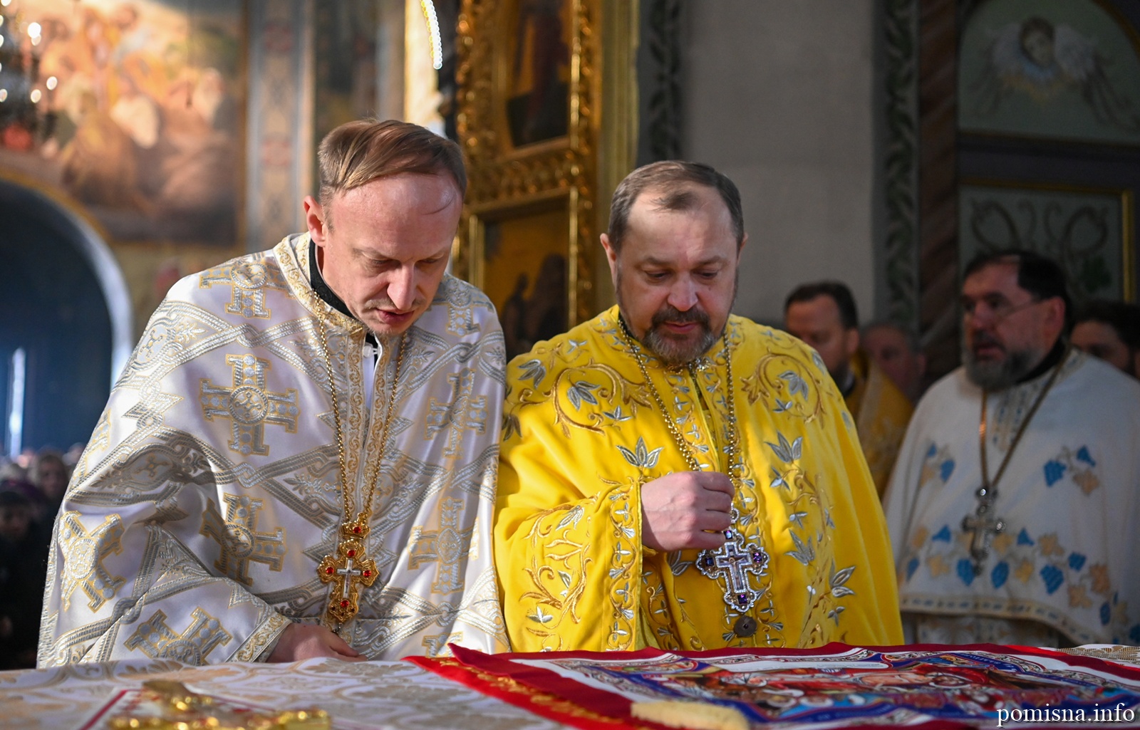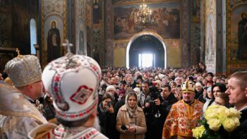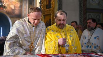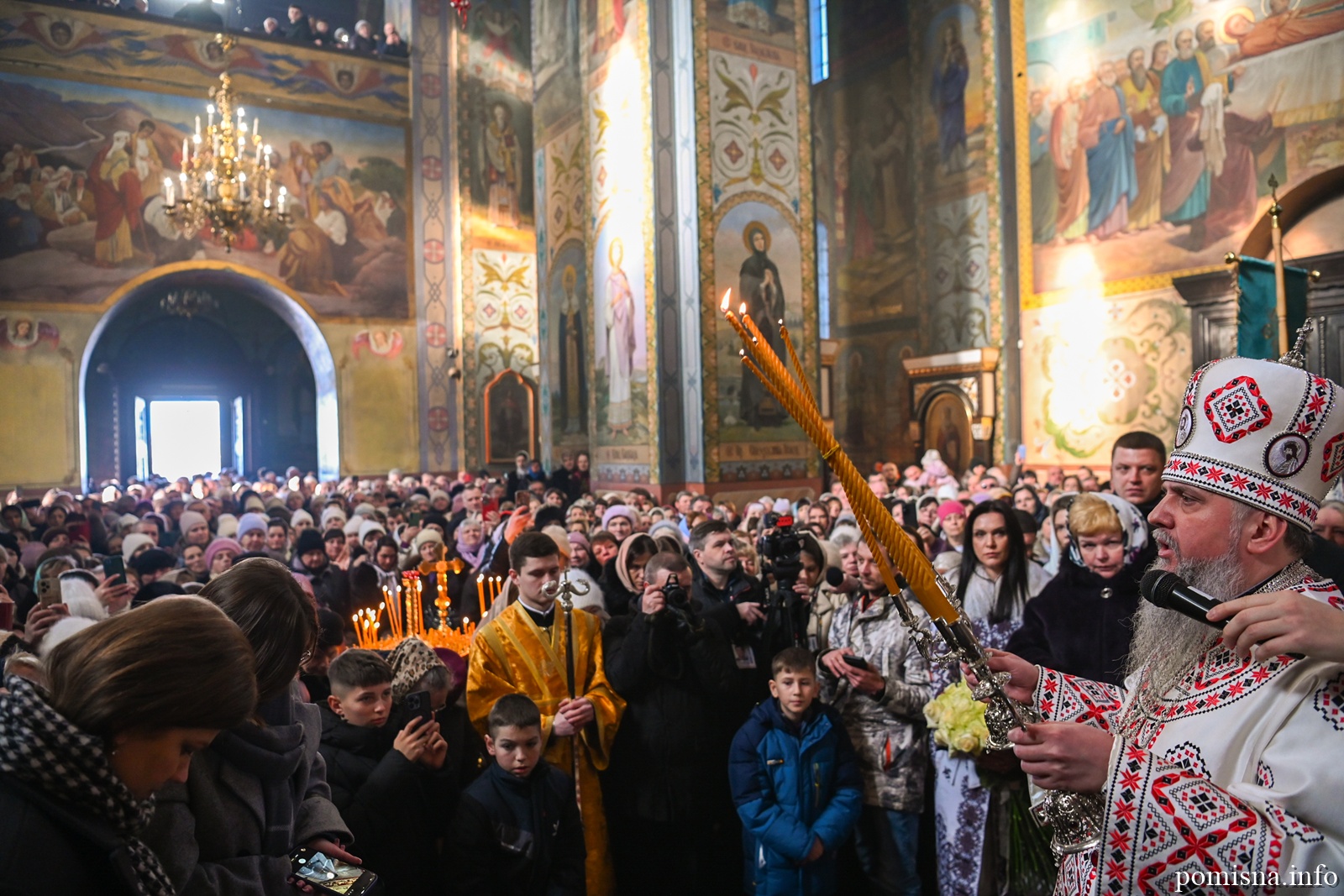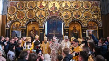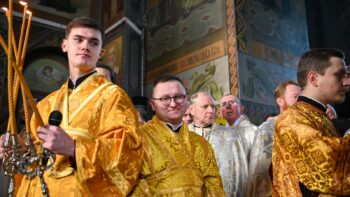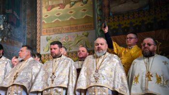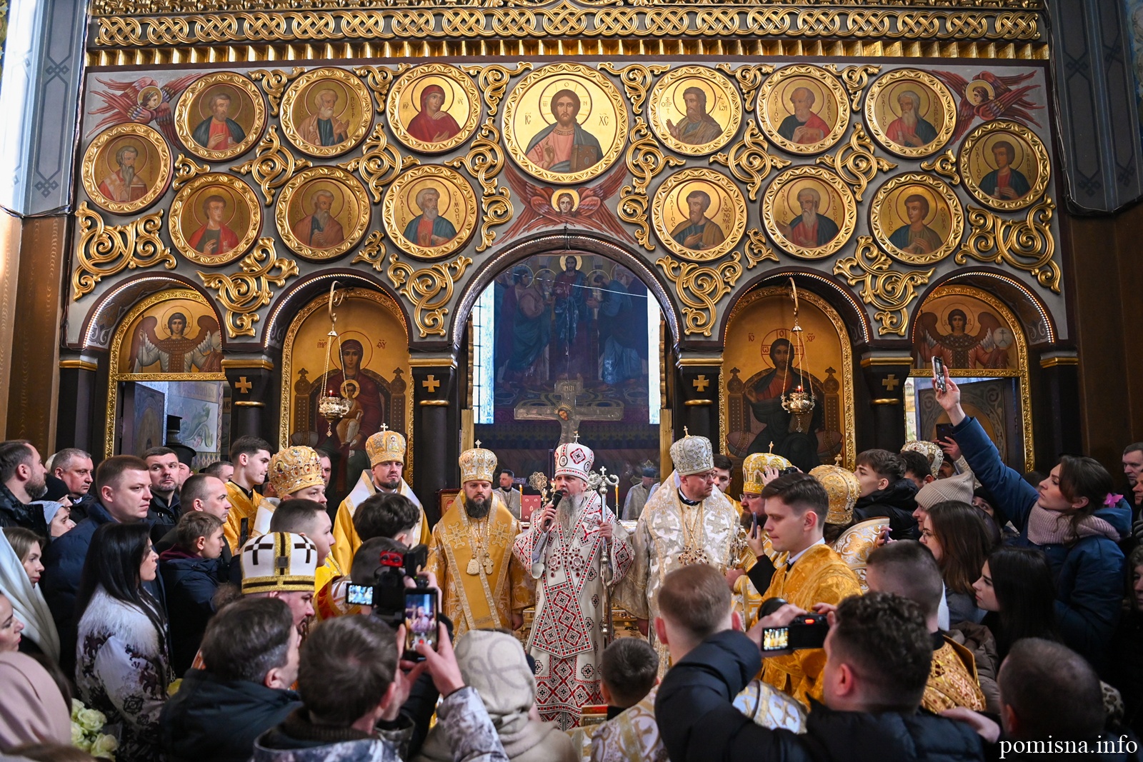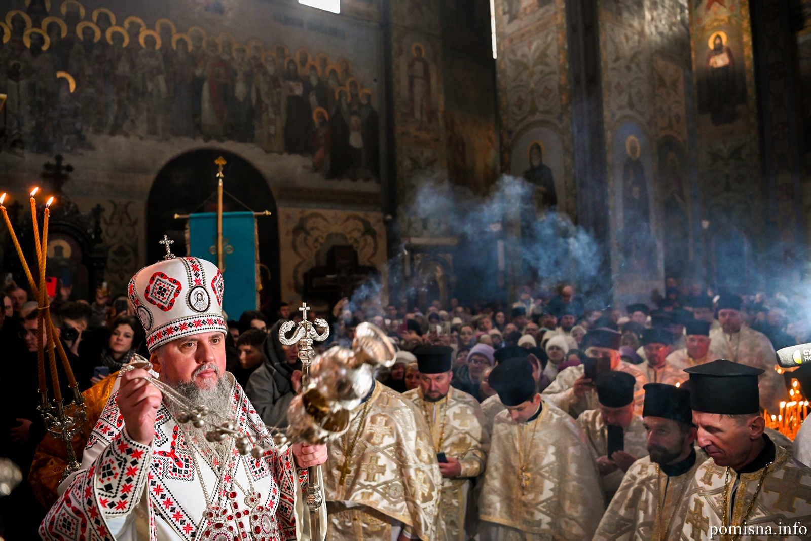 Наприкінці Божественної літургії Предстоятель привітав громаду з визначною подією – поверненням Української Церкви до древнього княжого Успенського собору, подарував храму напрестольне Євангеліє, архієпископу Матфею – памʼятну панагію та відзначив благодійників церковними нагородами.