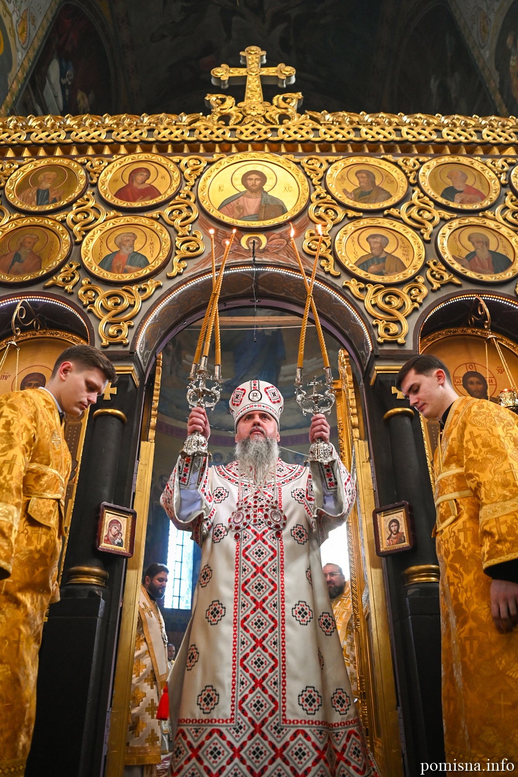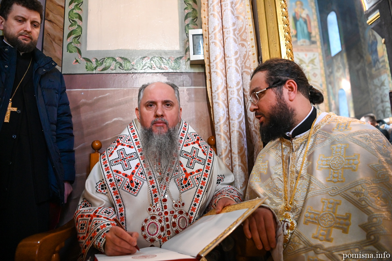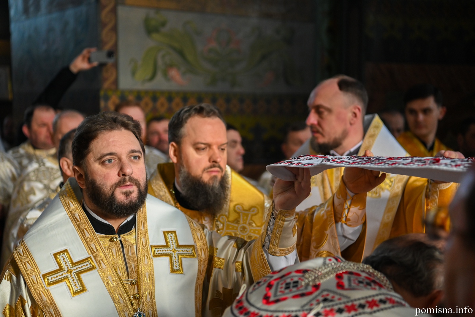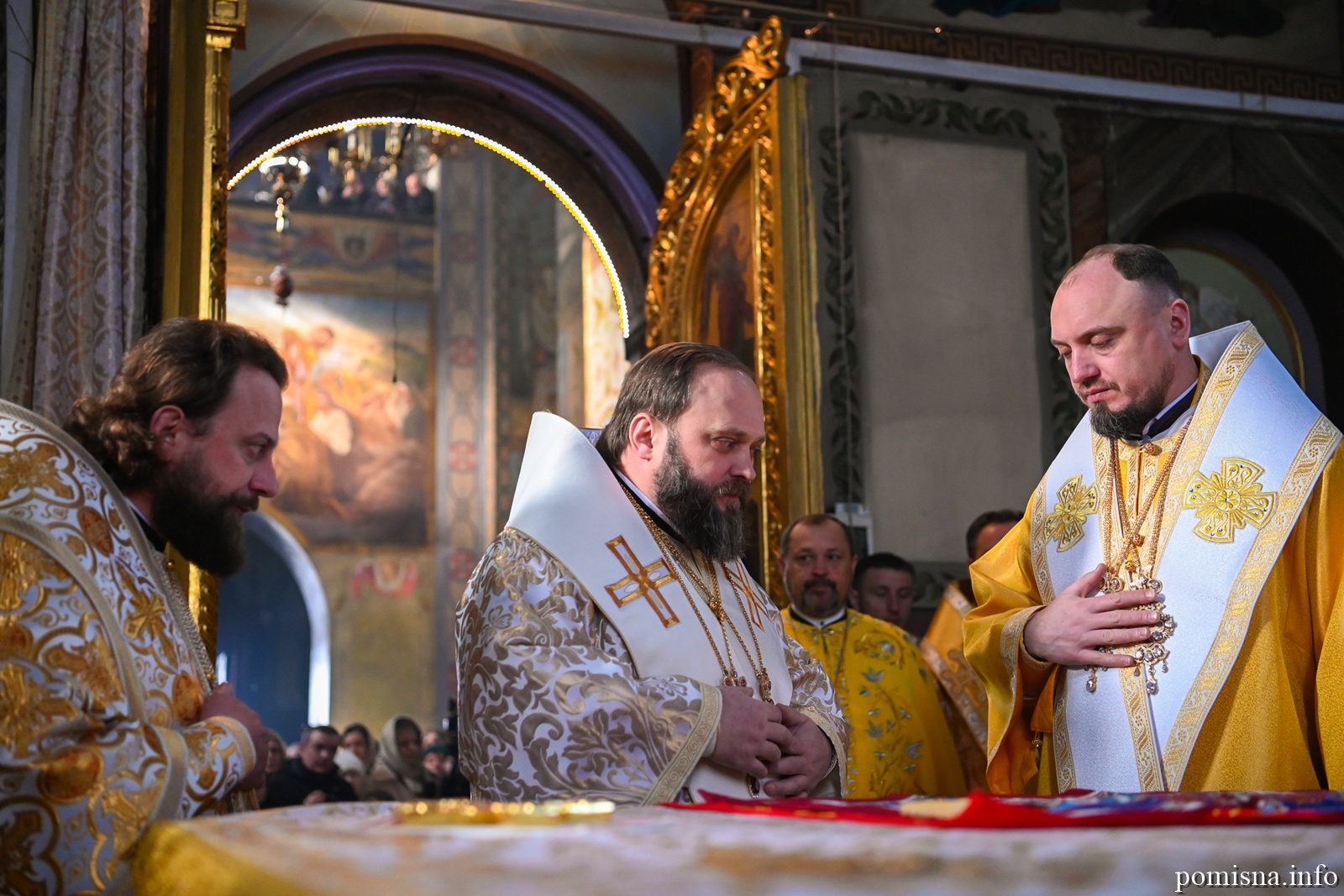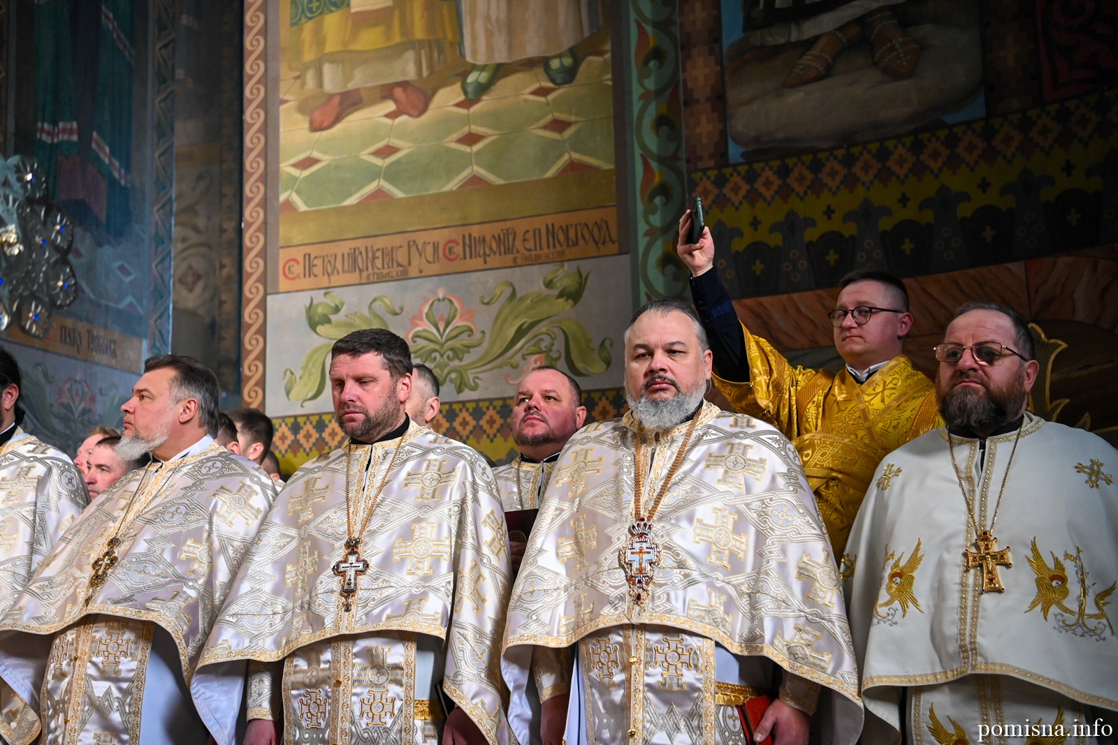 Предстоятелю автокефальної Української Православної Церкви співслужили митрополит Львівський і Сокальський Димитрій, митрополит Рівненський і Острозький Іларіон, архієпископ Володимирський і Нововолинський Матфей, архієпископ Вишгородський Агапіт, архієпископ Хмельницький і Шепетівський Павло, єпископ Житомирський і Овруцький Паїсій, єпископ Бориспільський Авраамій, а також місцеве і запрошене духовенство.
