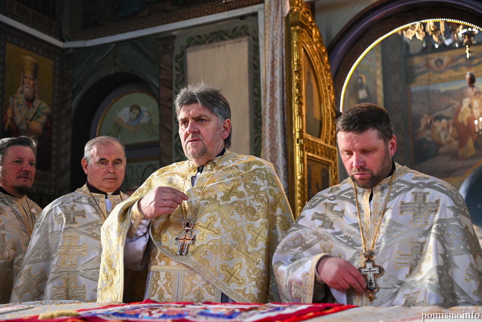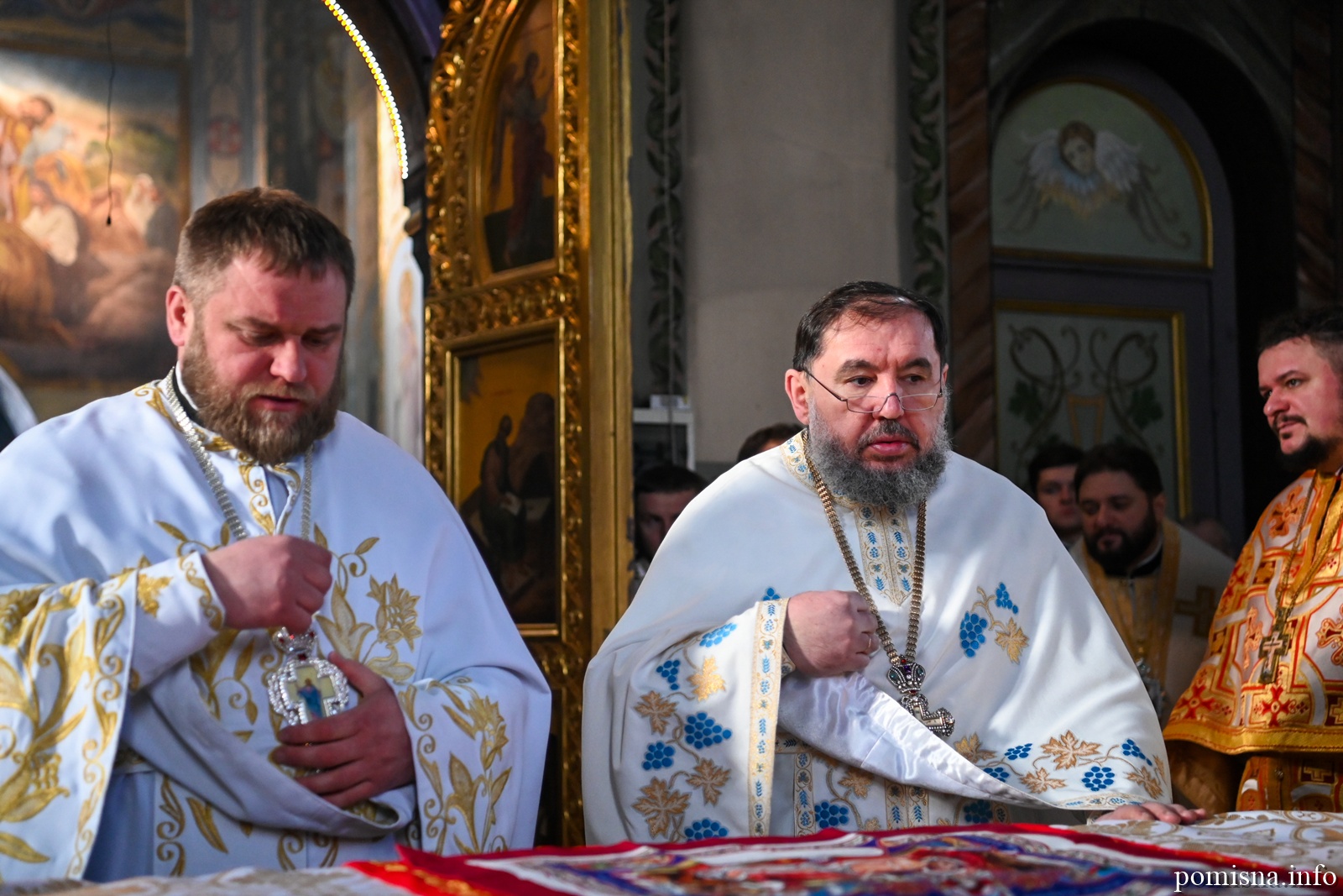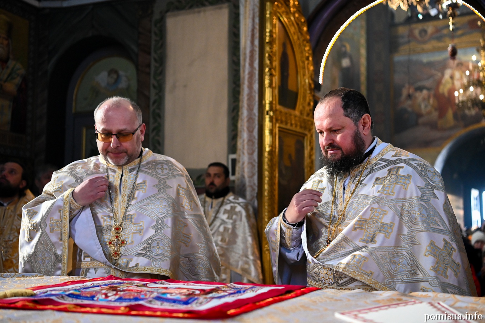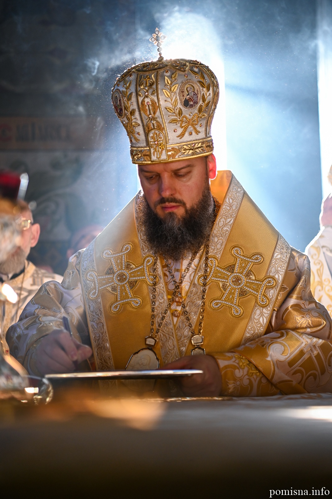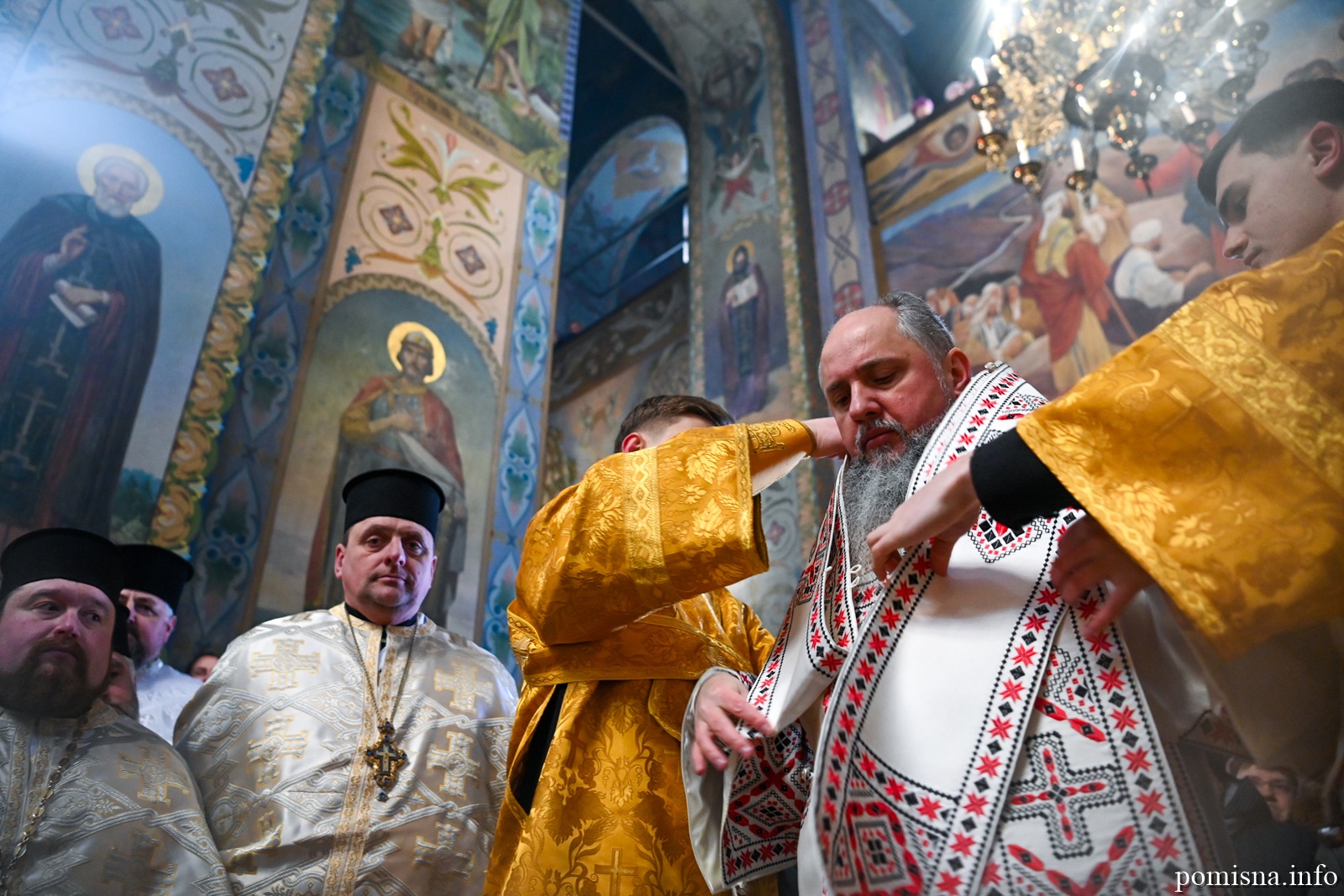 Предстоятелю автокефальної Української Православної Церкви співслужили митрополит Львівський і Сокальський Димитрій, митрополит Рівненський і Острозький Іларіон, архієпископ Володимирський і Нововолинський Матфей, архієпископ Вишгородський Агапіт, архієпископ Хмельницький і Шепетівський Павло, єпископ Житомирський і Овруцький Паїсій, єпископ Бориспільський Авраамій, а також місцеве і запрошене духовенство.