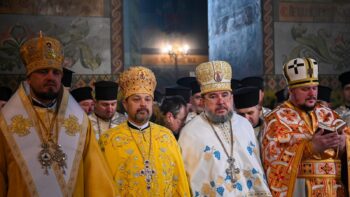 Перед початком відправи Його Блаженство вшанував полеглих захисників України, поклавши квіти до меморіалу на їхню честь.
