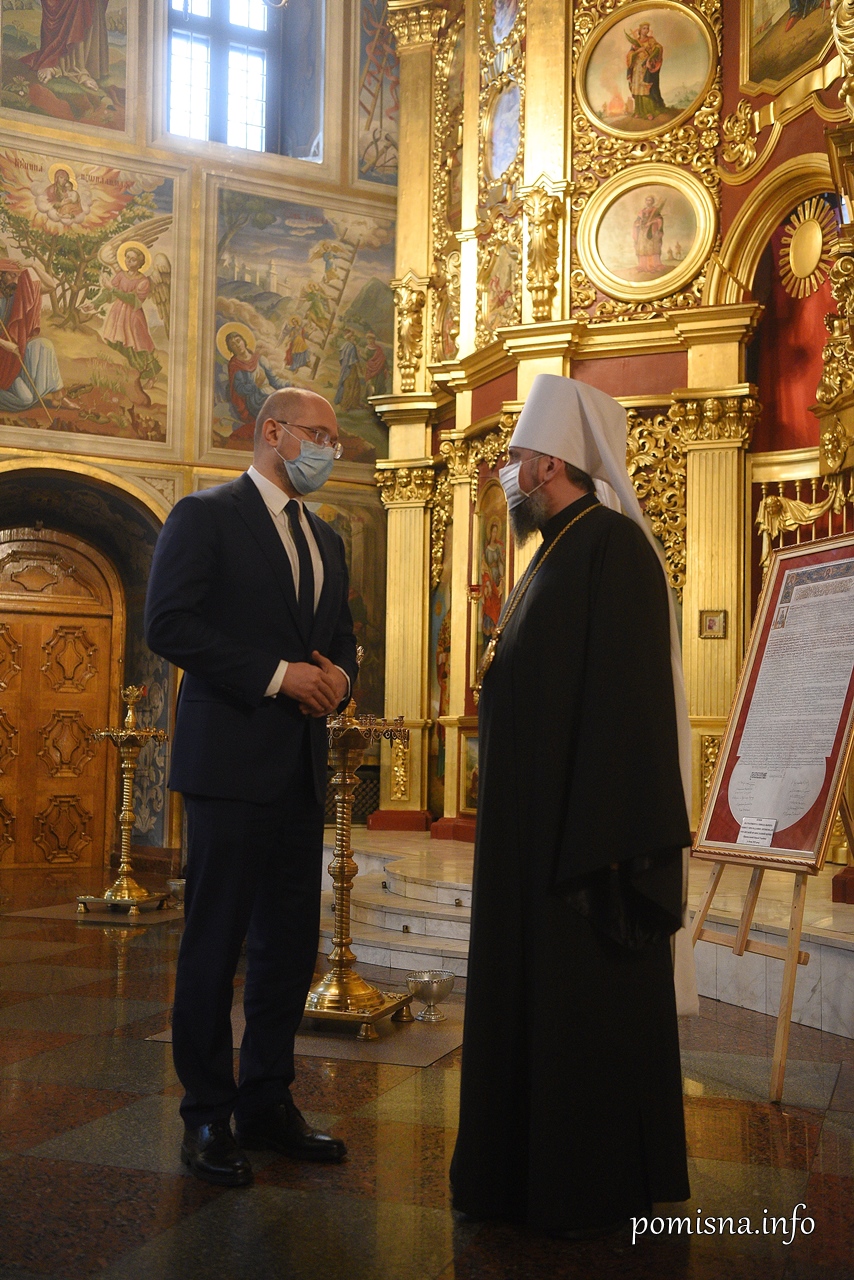 Після зустрічі Предстоятель Православної Церкви України разом з Прем’єр-міністром відвідав Свято-Михайлівський Золотоверхий собор.
