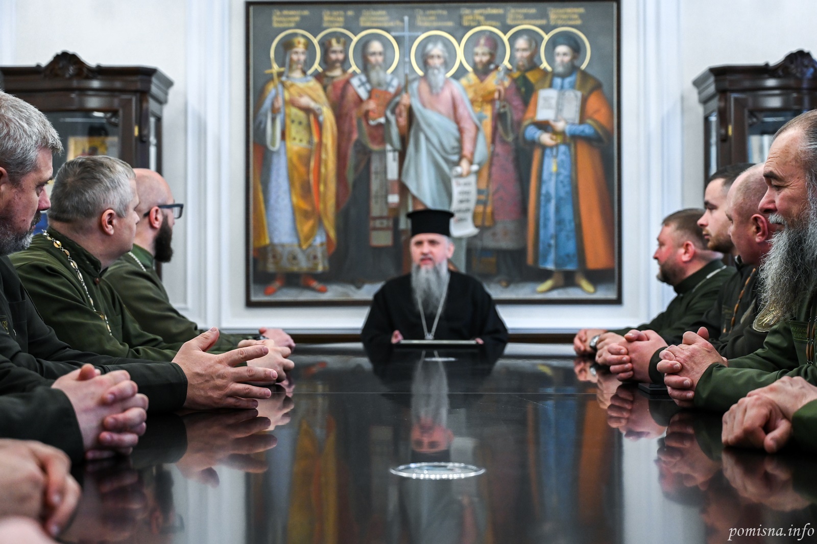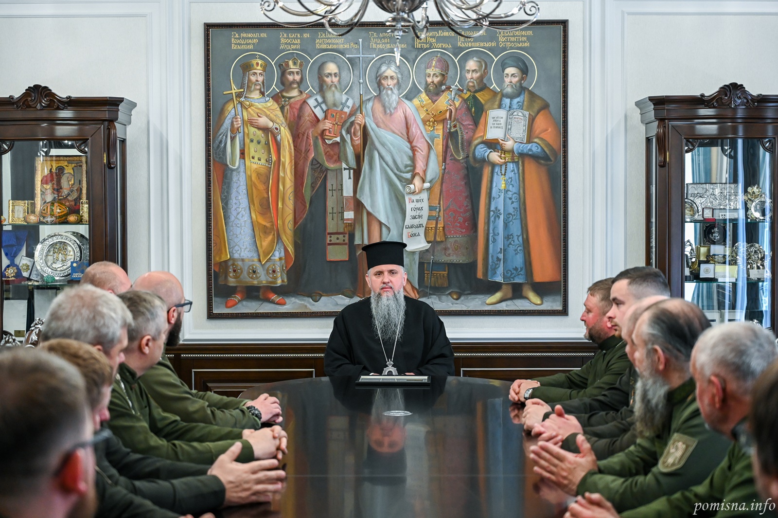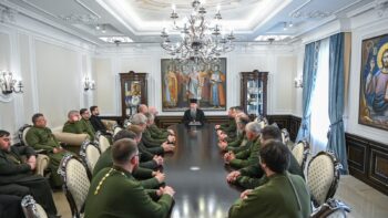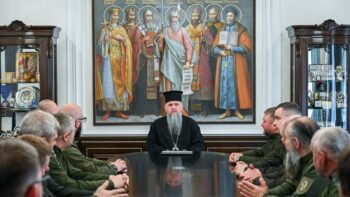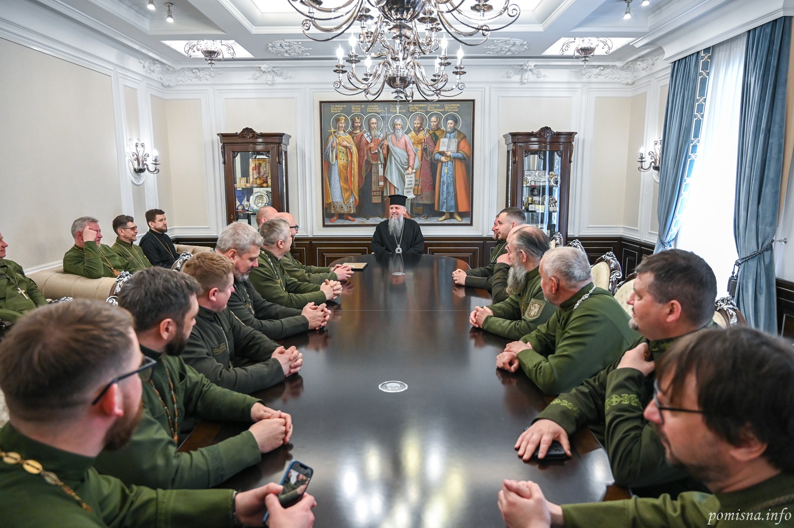 Блаженнійший Митрополит Київський і всієї України Епіфаній 30 квітня 2026 року прийняв у своїй резиденції при Свято-Михайлівському Золотоверхому монастирі військових капеланів Православної Церкви України, які завершують навчання за спеціальною програмою у Військовому інституті Київського національного університету імені Тараса Шевченка.