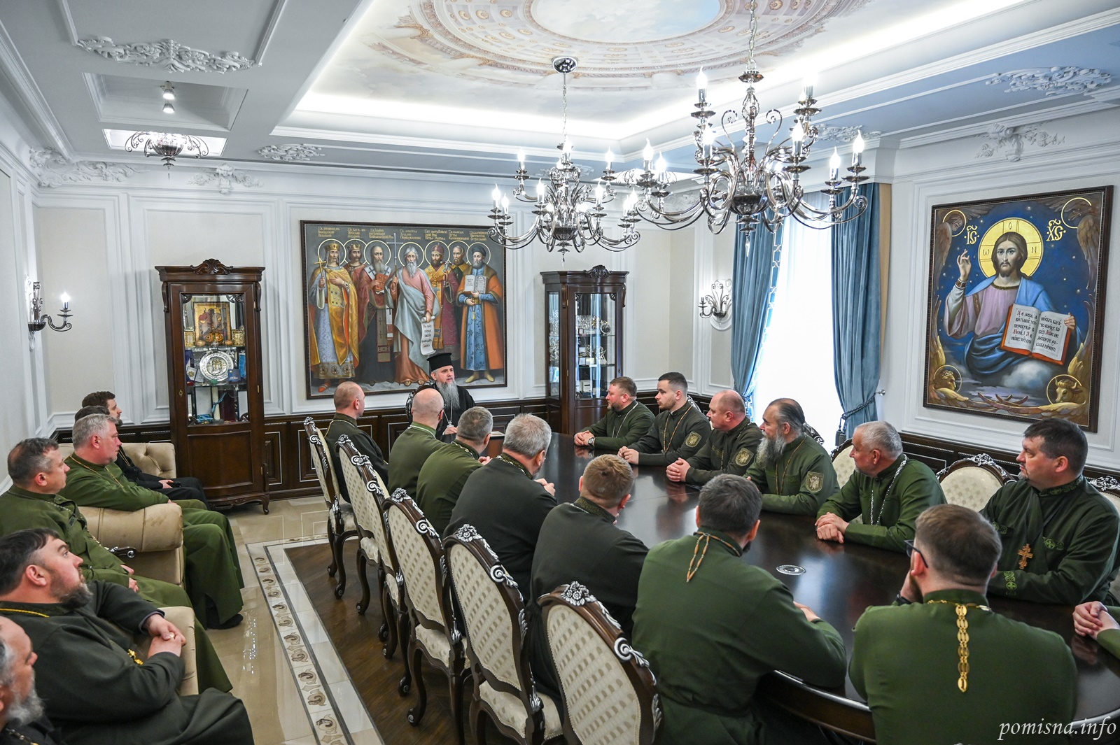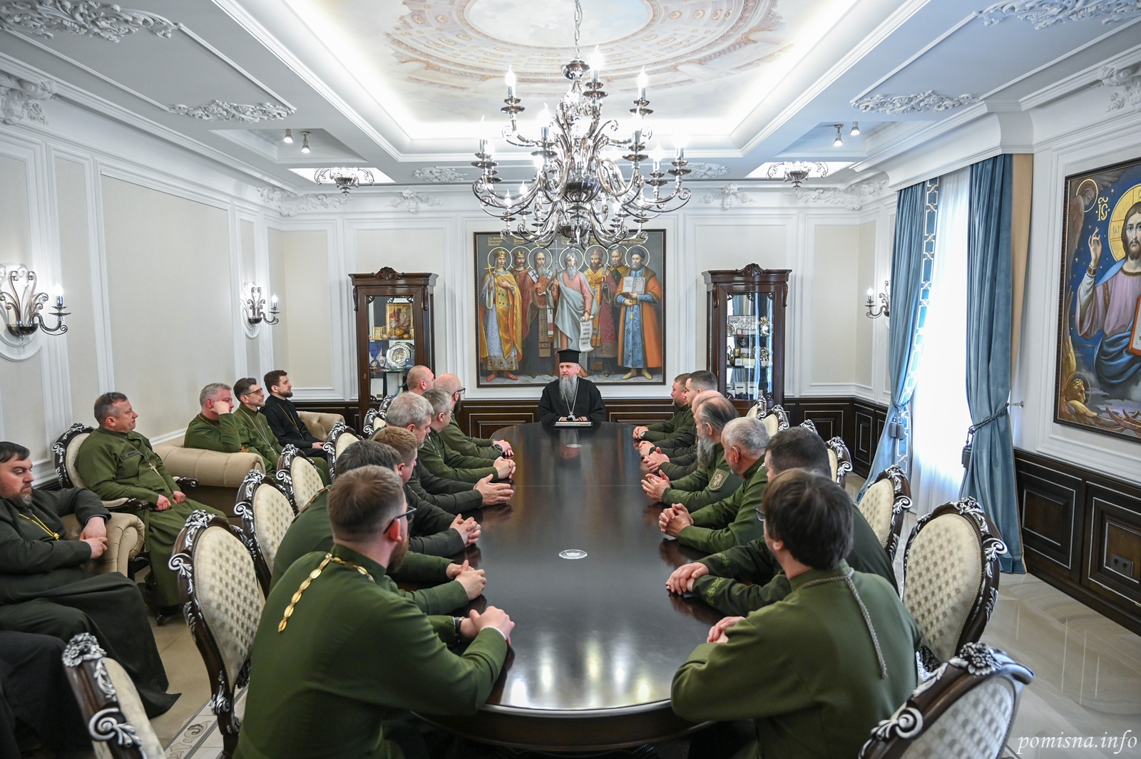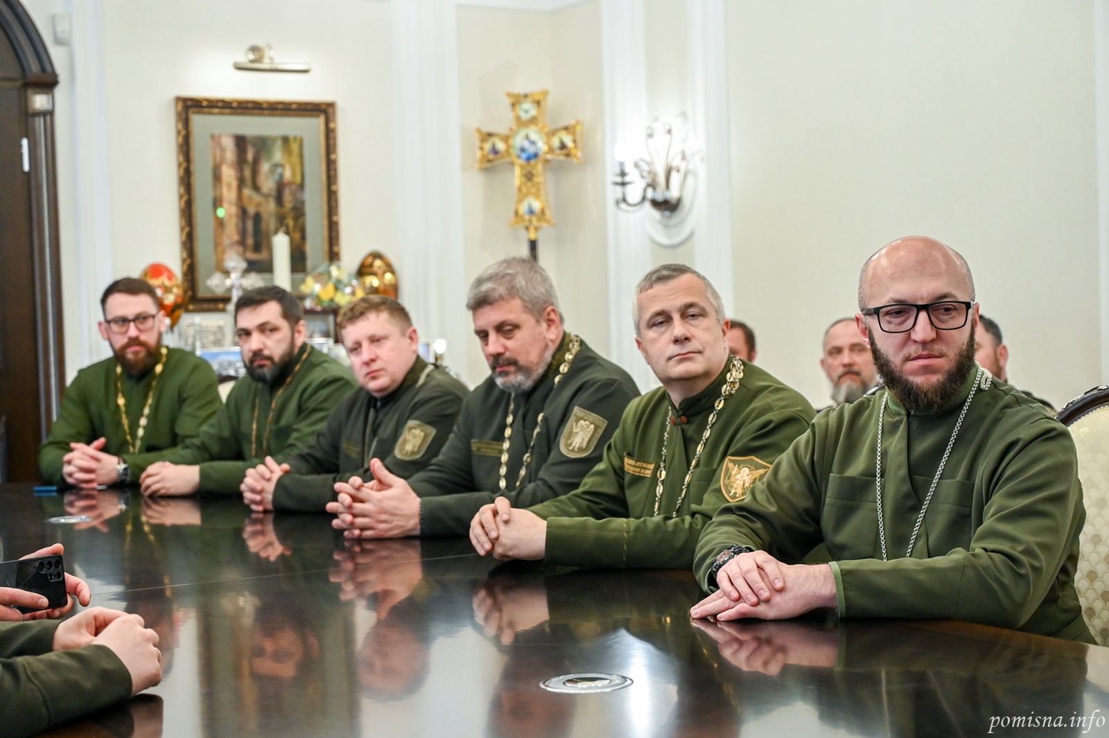 Блаженнійший Митрополит Київський і всієї України Епіфаній 30 квітня 2026 року прийняв у своїй резиденції при Свято-Михайлівському Золотоверхому монастирі військових капеланів Православної Церкви України, які завершують навчання за спеціальною програмою у Військовому інституті Київського національного університету імені Тараса Шевченка.