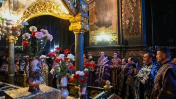 Після акафісту на могилі новопреставленого Святійшого Патріарха Філарета було відслужено заупокійну літію.