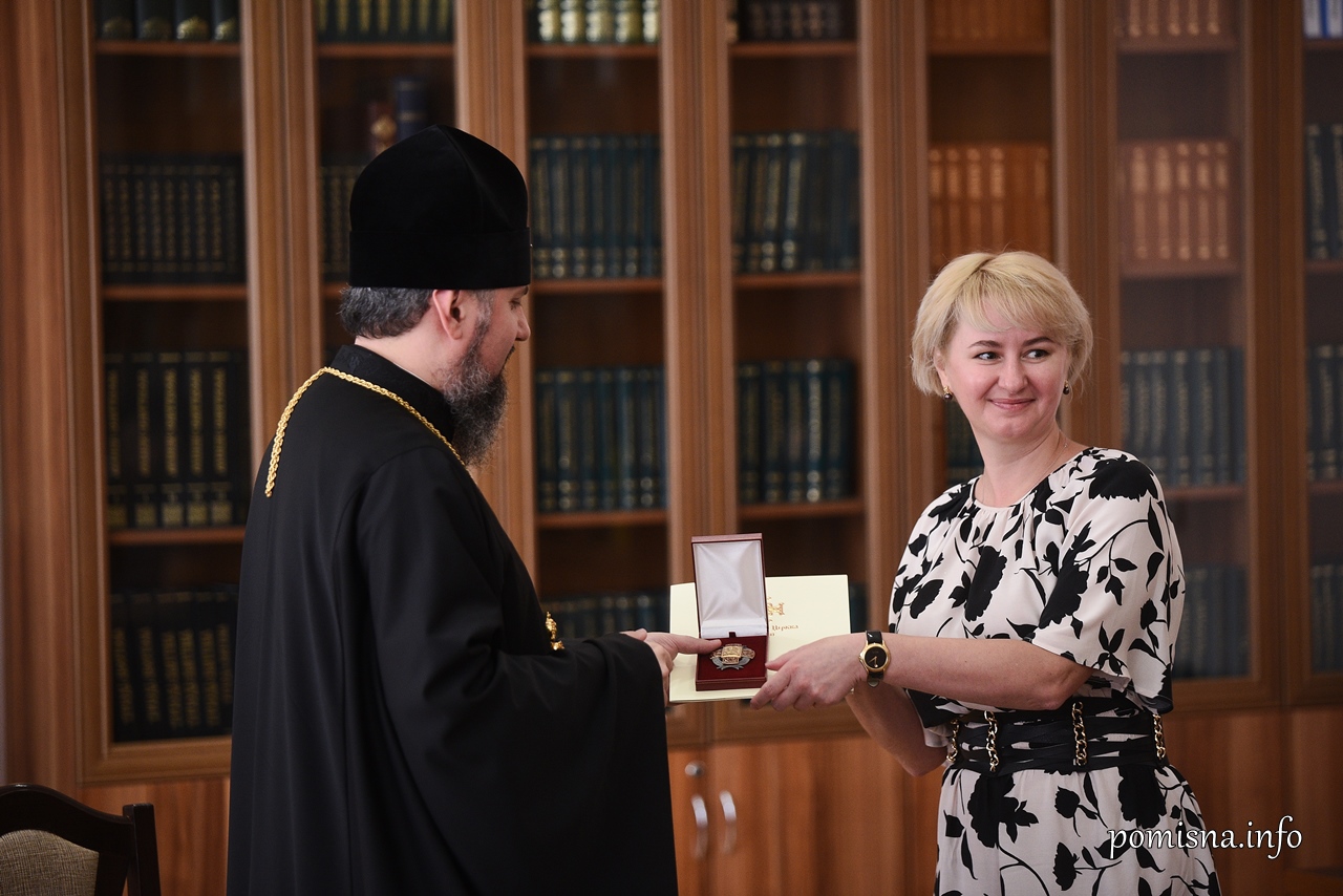 Предстоятель помісної Української Православної Церкви поспілкувався з медичними працівниками та за жертовне служіння у збереженні дару життя нагородив Людмилу Гордієнко, Богдана Біля, Олену Буханцеву, Ларису Трясак, Володимира Дінця, Назара Біля, Анну Назаренко, Сергія Нечипорука та Оксану Погрібну відзнакою святого великомученика і цілителя Пантелеймона.
