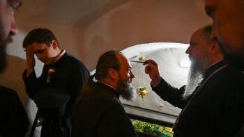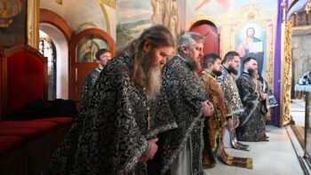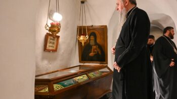 По завершенні богослужіння Митрополит Епіфаній та духовенство вклонилися у печерах перед святими мощами преподобних отців Печерських.