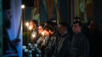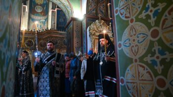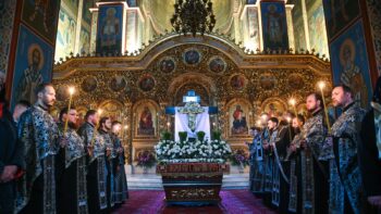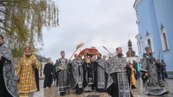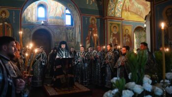 Разом з Предстоятелем Православної Церкви України молилися намісник Золотоверхої обителі архієпископ Вишгородський Агапіт, єпископ Макарівський Рафаїл, всечесна братія монастиря та запрошене духовенство.