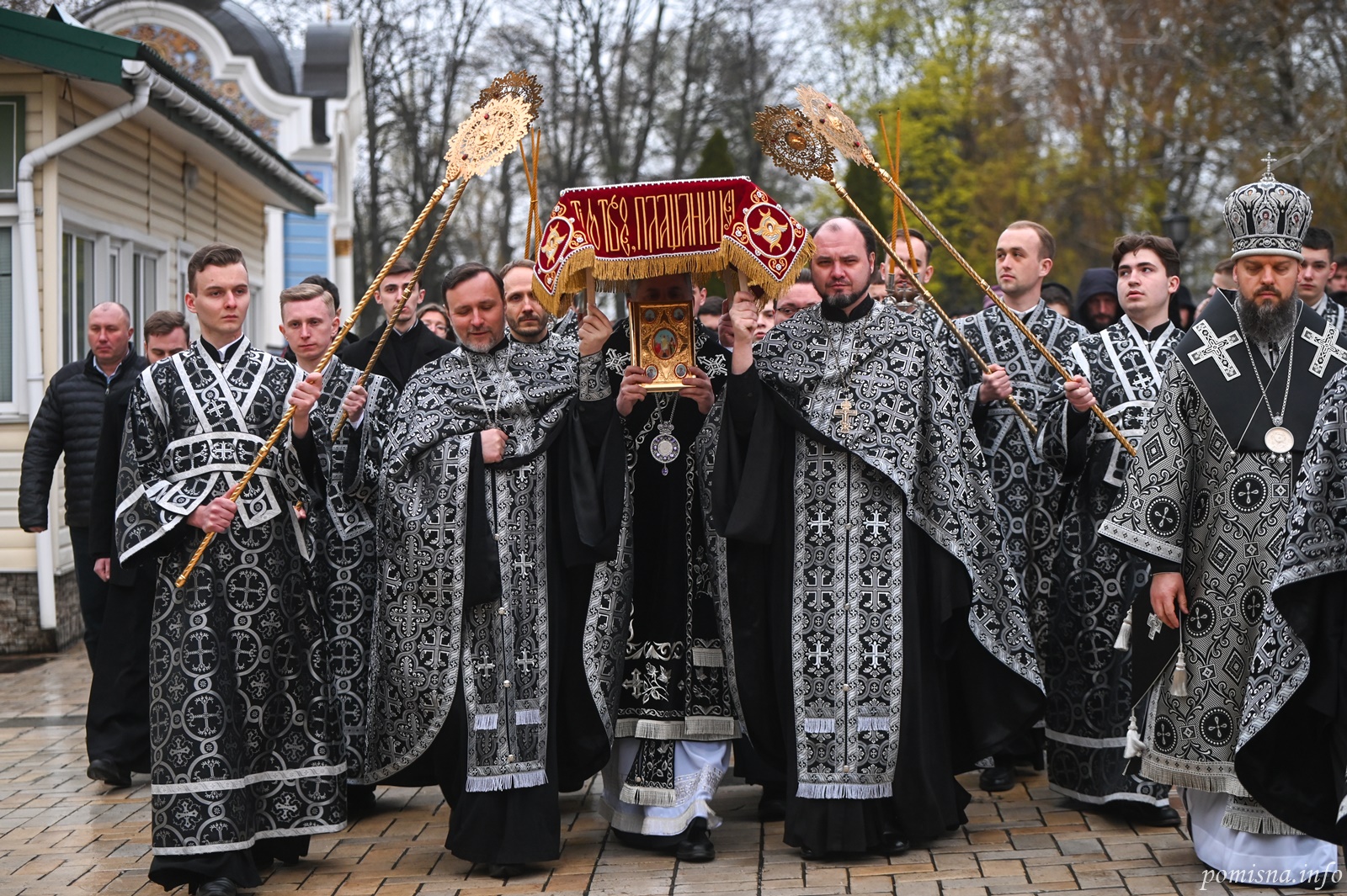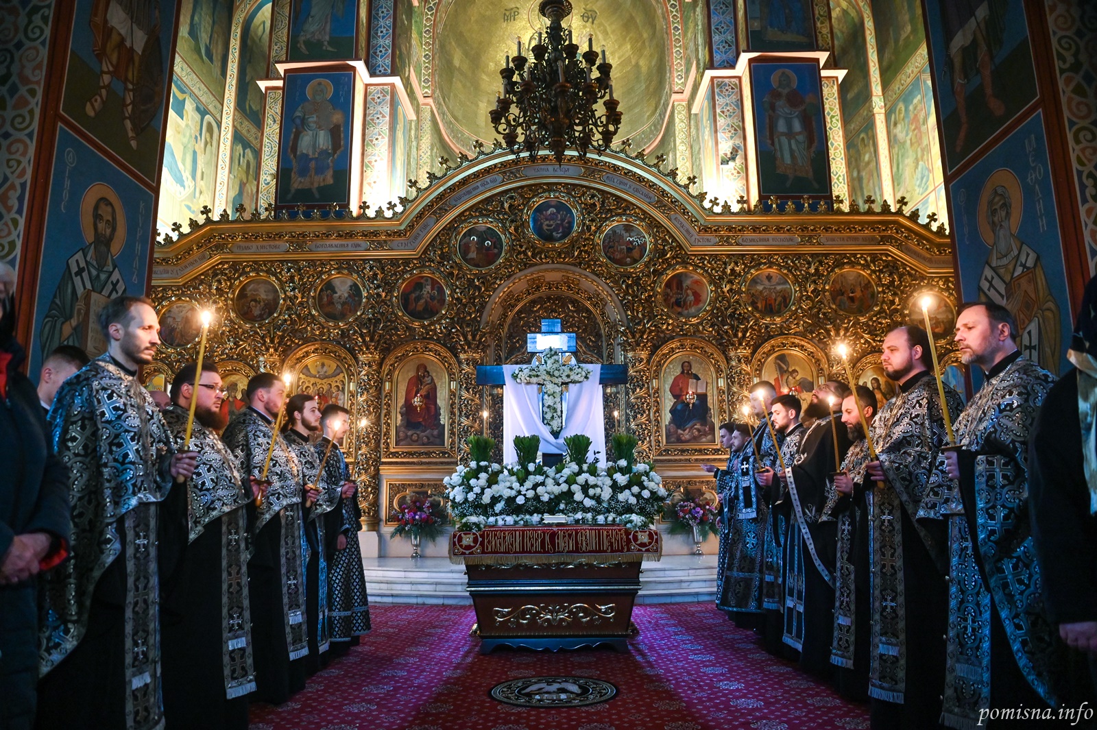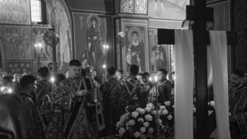 Після великого славослів’я під час співу «Святий Боже…» священнослужителі на спомин про зішестя Господа нашого Ісуса Христа в пекло і перемогу Його над смертю винесли з храму Плащаницю.