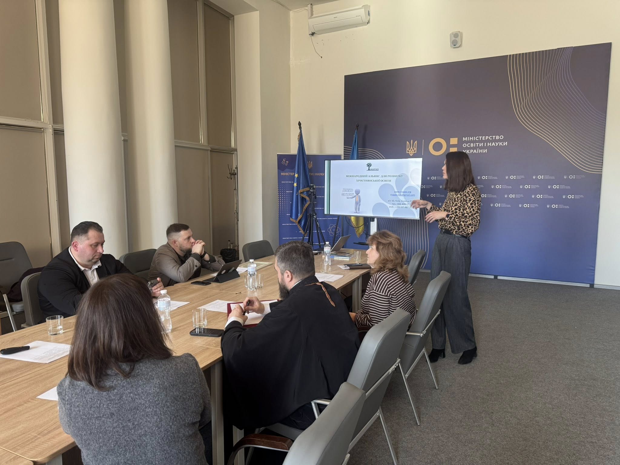 Наступним питанням порядку денного стало обговорення створення та розвитку приватних закладів дошкільної і загальної середньої освіти, заснованих протестантськими релігійними організаціями, а також проблемних питань, що виникають у процесі їхньої діяльності. Із доповіддю виступила директорка Міжнародного альянсу для розвитку християнської освіти (МАРХО) Тетяна Іванівна Чумакова. У своїй презентації вона представила діяльність Альянсу як платформи для професійної підтримки та співпраці педагогів-християн різних конфесій, рівнів освіти та предметних галузей. Доповідачка підкреслила, що освіта не є світоглядно нейтральною сферою, адже кожен освітній процес так чи інакше передає певне бачення світу та систему цінностей. Саме тому важливо, щоб навчання поєднувало високі академічні стандарти із формуванням моральних орієнтирів, відповідальності та готовності служити ближнім.