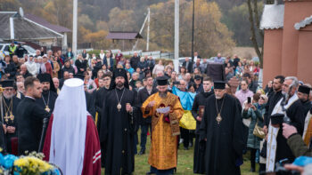 Під час візиту Предстоятель Православної Церкви України звершив чин благословення пам’ятника Патріарху Володимиру, який встановлено у центрі села. Після чого відбулося покладання квітів до підніжжя пам’ятника.