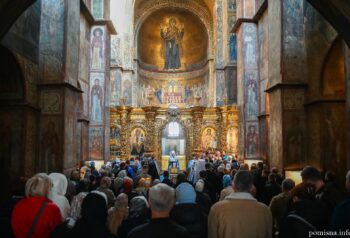 Його Блаженству співслужили намісник монастиря архієпископ Вишгородський Агапіт та всечесна братія Золотоверхої обителі.