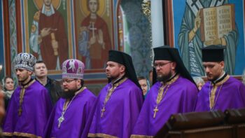 Предстоятелю автокефальної Української Православної Церкви співслужили єпископ Васильківський Єфрем, всечесна братія монастиря та запрошене духовенство.