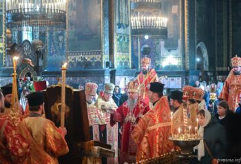 Предстоятелю автокефальної Української Православної Церкви співслужили намісник Золотоверхої обителі архієпископ Вишгородський Агапіт, єпископ Васильківський Єфрем, всечесна братія монастиря та запрошене духовенство.