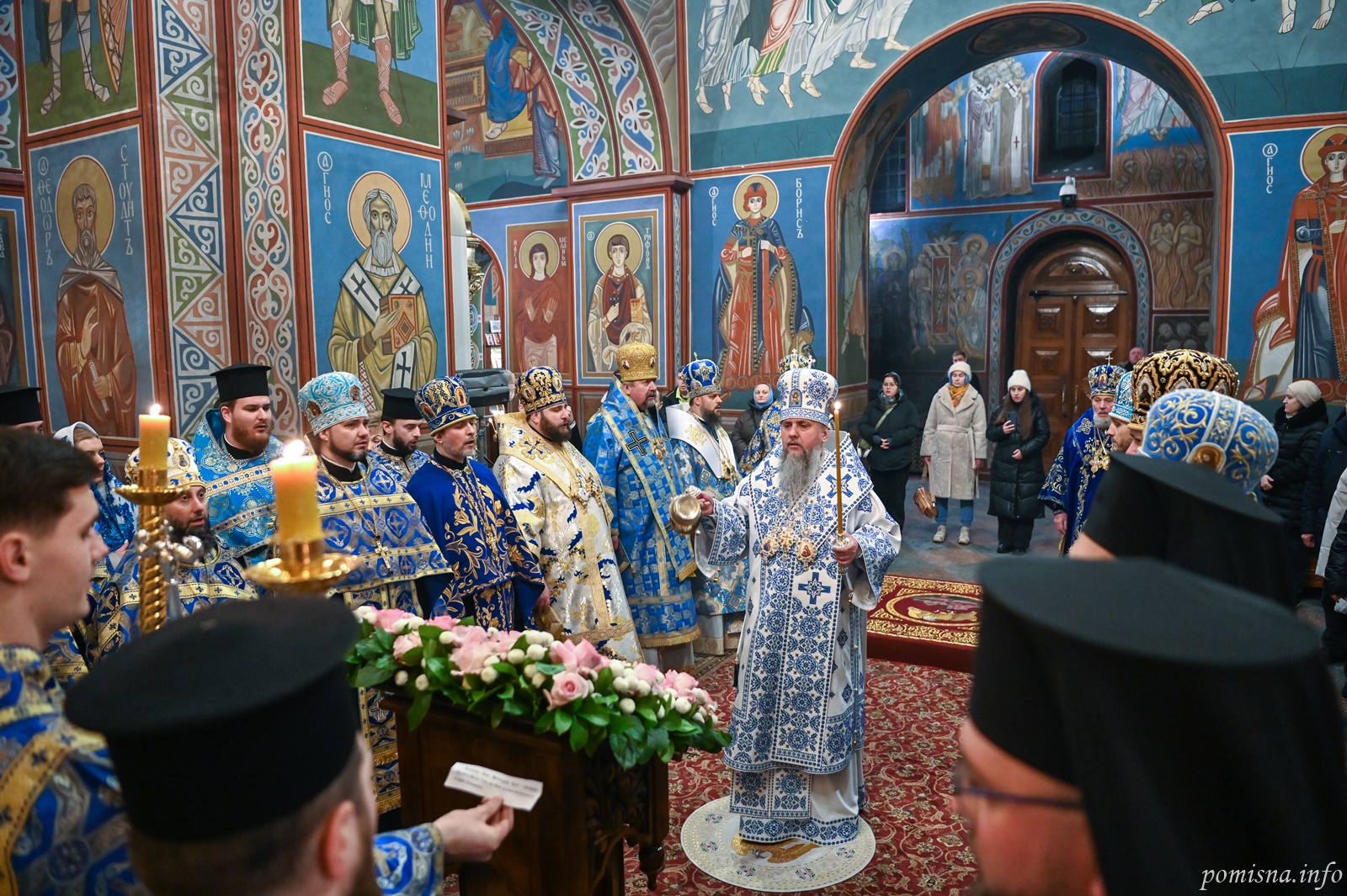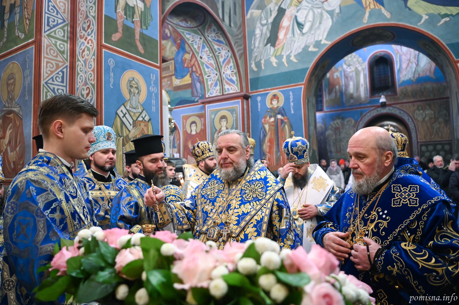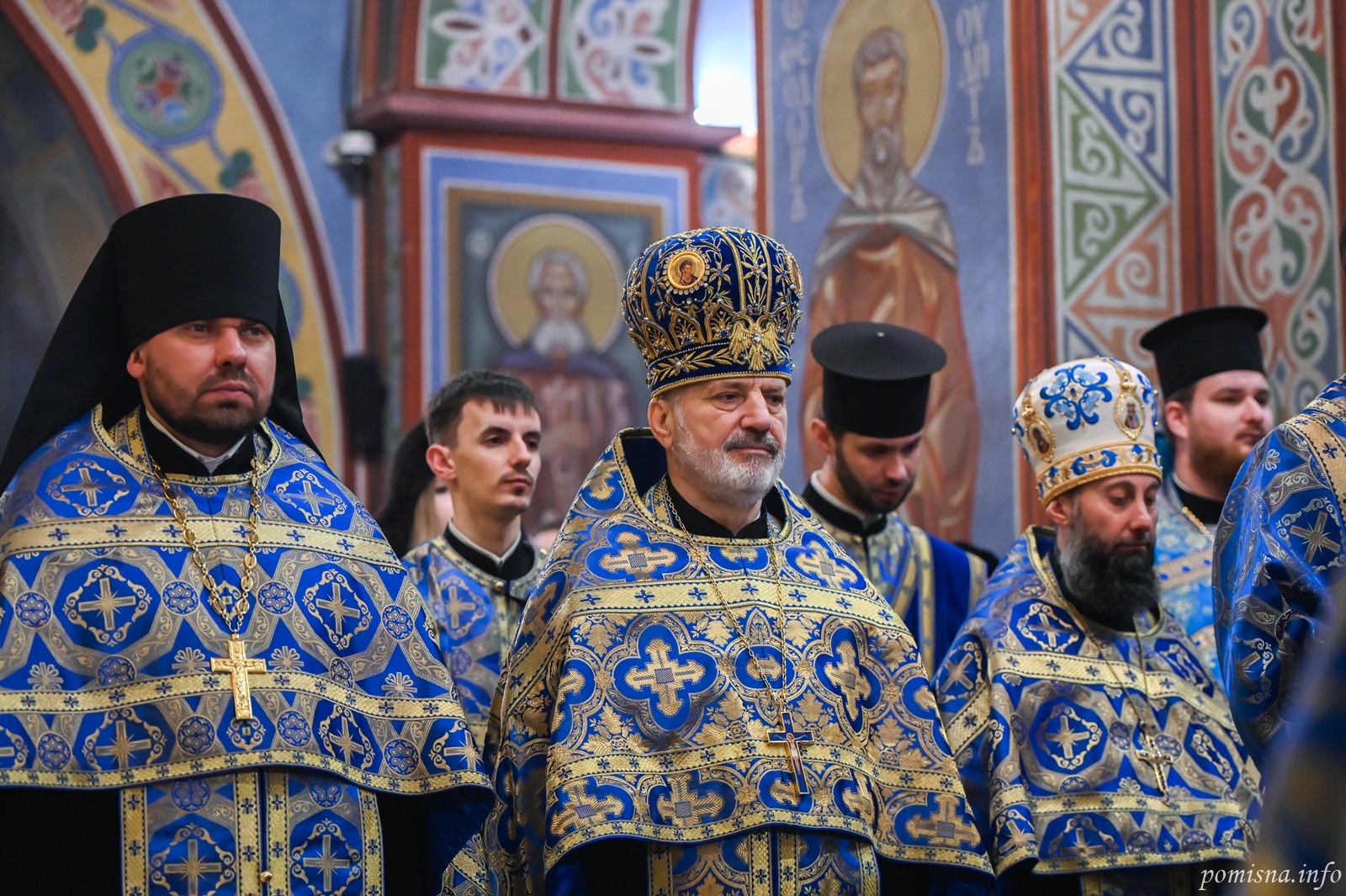 Предстоятелю автокефальної Української Православної Церкви співслужили митрополит Вінницький і Барський Симеон, митрополит Івано-Франківський і Галицький Іоасаф, архієпископ Вишгородський Агапіт, архієпископ Хмельницький і Шепетівський Павло, єпископ Ужгородський і Хустський Кирил, єпископ Херсонський і Каховський Борис, єпископ Васильківський Єфрем, всечесна братія Золотоверхої обителі та запрошене духовенство.
