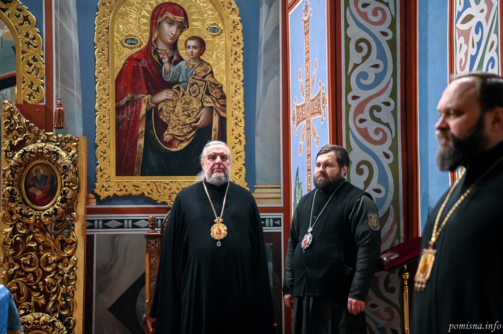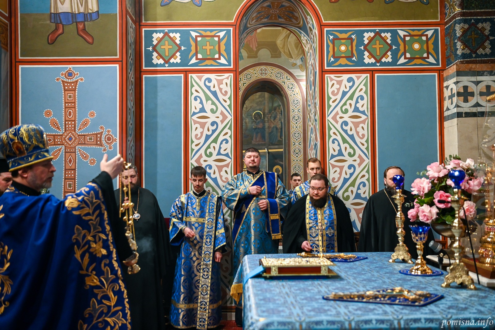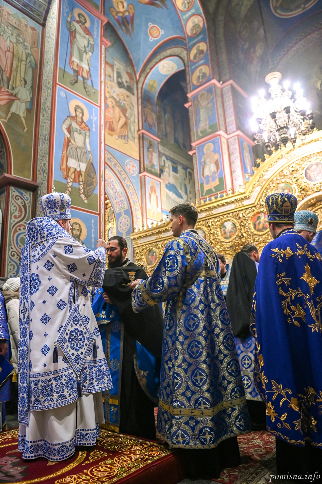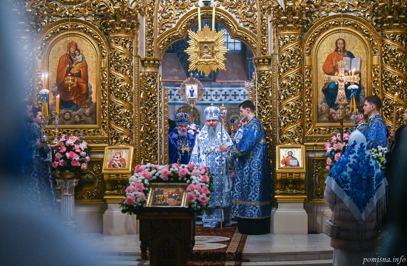 Предстоятелю автокефальної Української Православної Церкви співслужили митрополит Вінницький і Барський Симеон, митрополит Івано-Франківський і Галицький Іоасаф, архієпископ Вишгородський Агапіт, архієпископ Хмельницький і Шепетівський Павло, єпископ Ужгородський і Хустський Кирил, єпископ Херсонський і Каховський Борис, єпископ Васильківський Єфрем, всечесна братія Золотоверхої обителі та запрошене духовенство.
