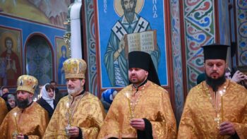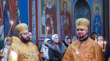 Предстоятелю автокефальної Української Православної Церкви співслужили намісник Золотоверхої обителі архієпископ Вишгородський Агапіт, єпископ Васильківський Єфрем, всечесна братія монастиря та запрошене духовенство.